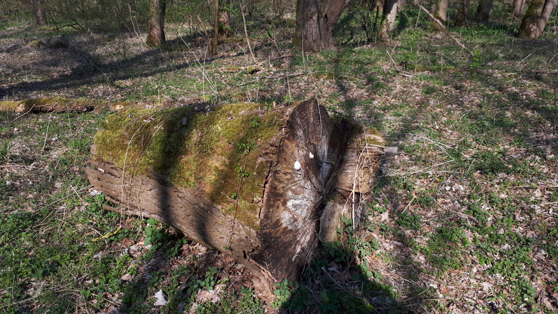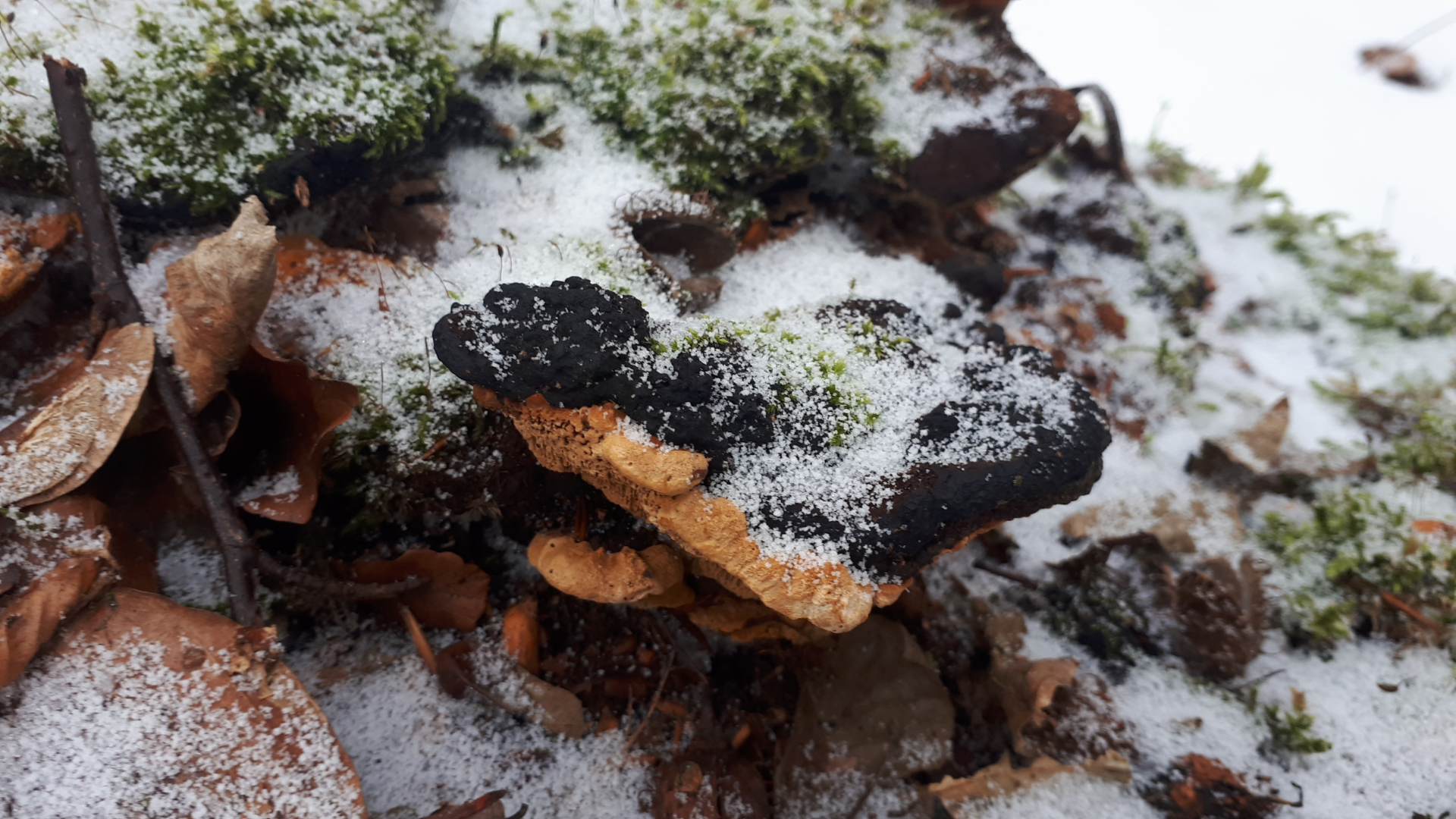 Habe im Buchenwald Totholzzersetzer gefunden. Ist das ein Feuerschwamm? Die dunklen Flecken am Stamm könnten Eckenscheibchen sein?
