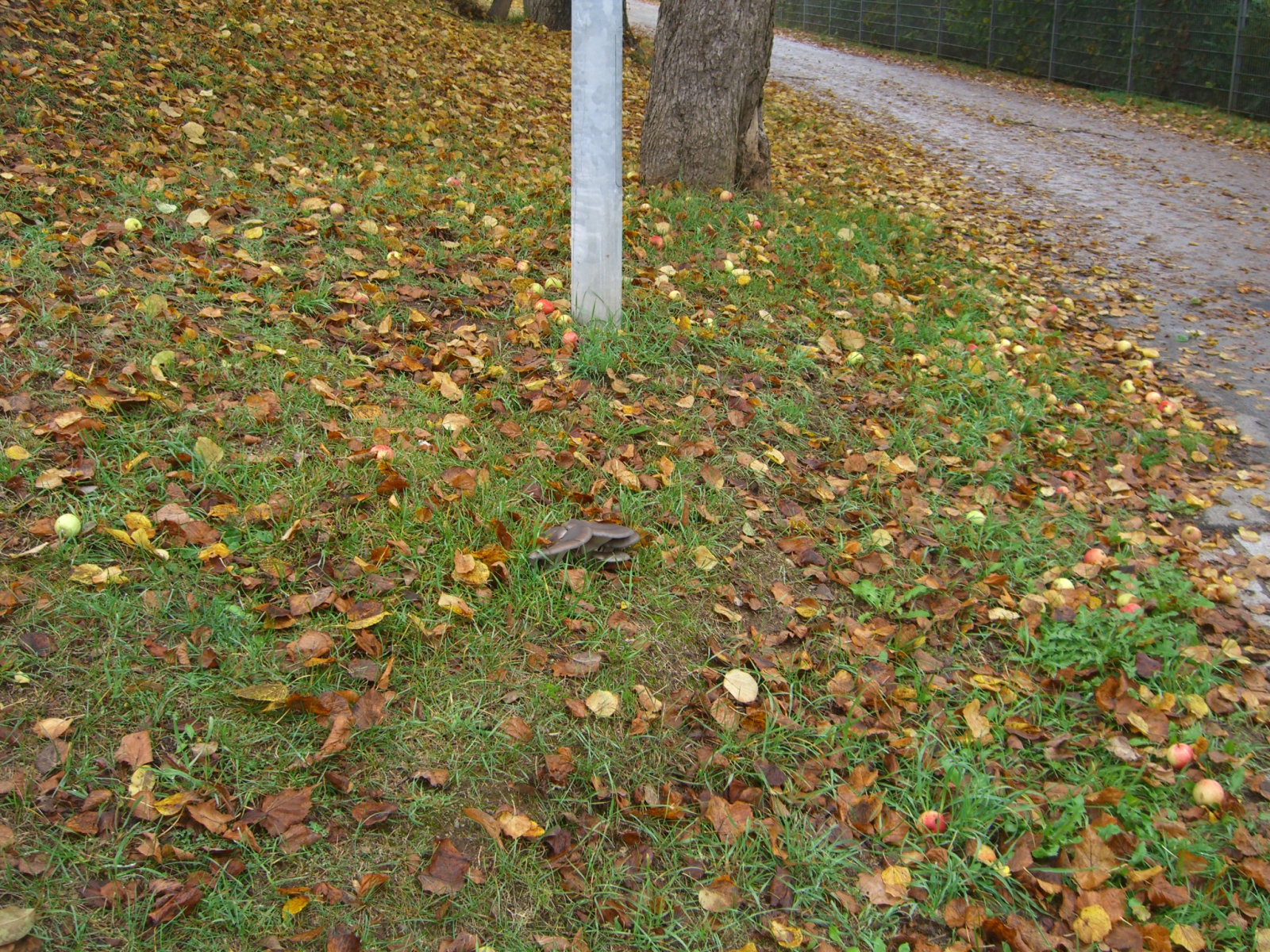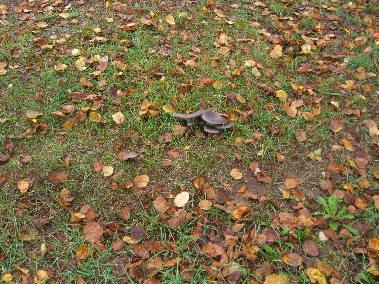 so, jetzt kommen die Fotos vor Ort, konnte also wirklich kein Holz erkennen, auf dem die Pilze wachsen. Also Gras, etwas Schotter, vielleicht die Wurzeln vom Apfelbaum?. Der steht aber etwas weg. Vielleicht kann jemand noch damit etwas anfangen.