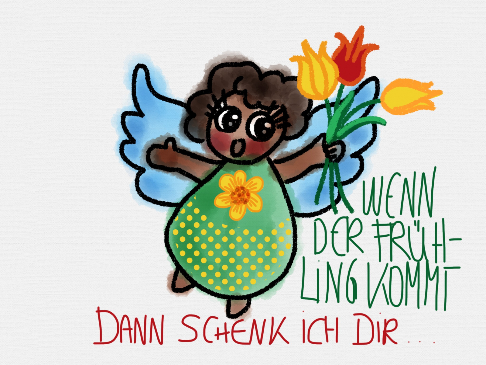 Freu-Engelchen (ein älteres Bild, das ich im Rahmen abfotografiert habe) zeigt ganz andere Gefühle, aber nicht minder heftig! Sie hat gar nichts mit Pilzen zu tun...