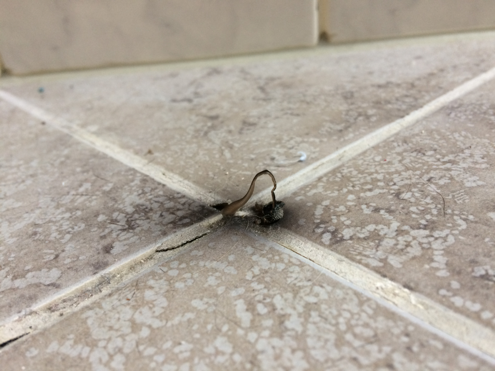 Ein schwarzer Pilz bahnt sich seinen Weg durch die defekten Fliesenfugen!