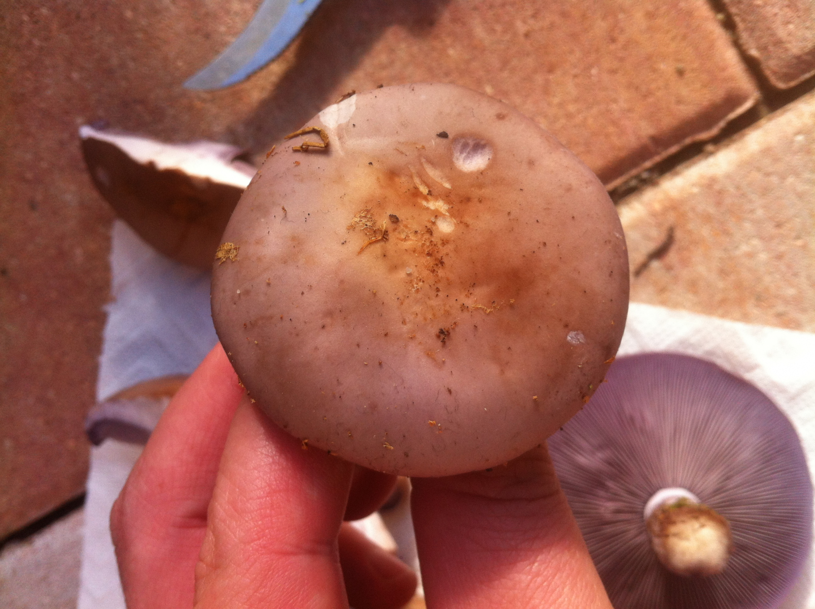 Der Geruch ist mit dem von Wiesenchampingions zu vergleichen jedoch nicht so intensiv. Die kleineren (ca 5cm) Exemplare habe ich an einer anderen Stelle gefunden, sind etwas heller, nicht so sehr violett wie die grösseren (ca 8 cm )