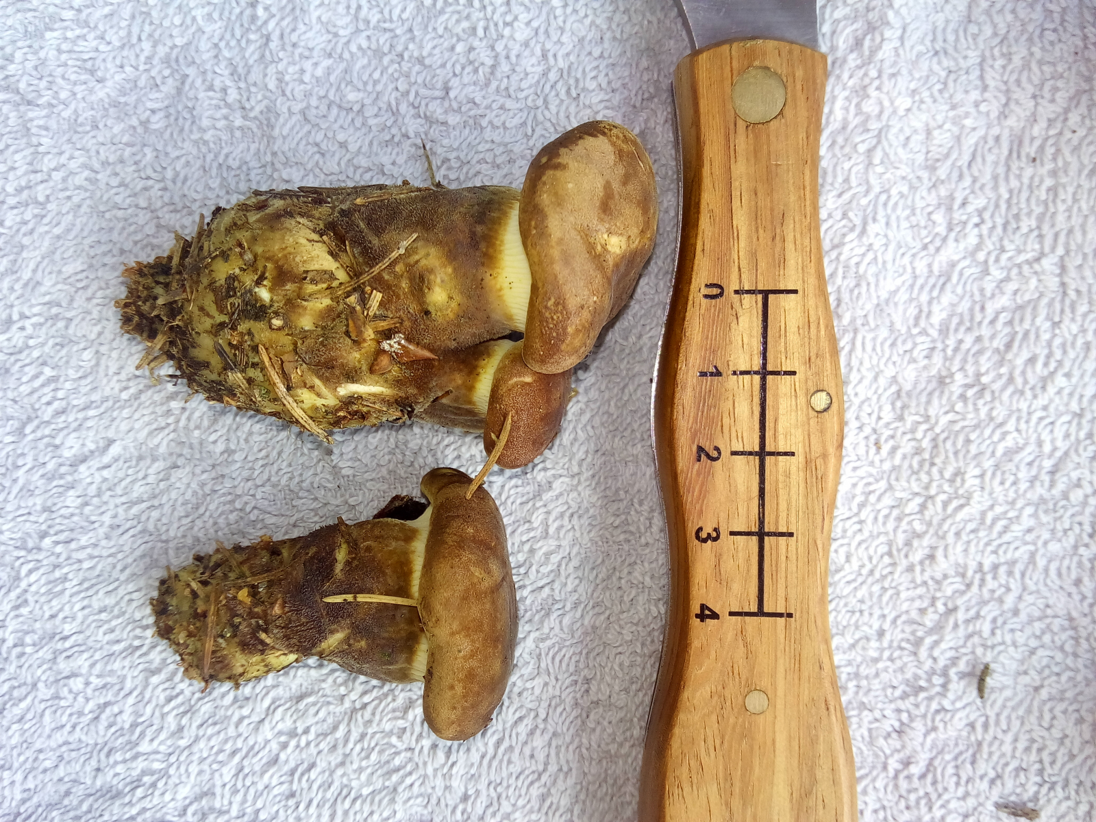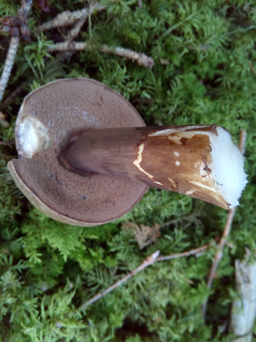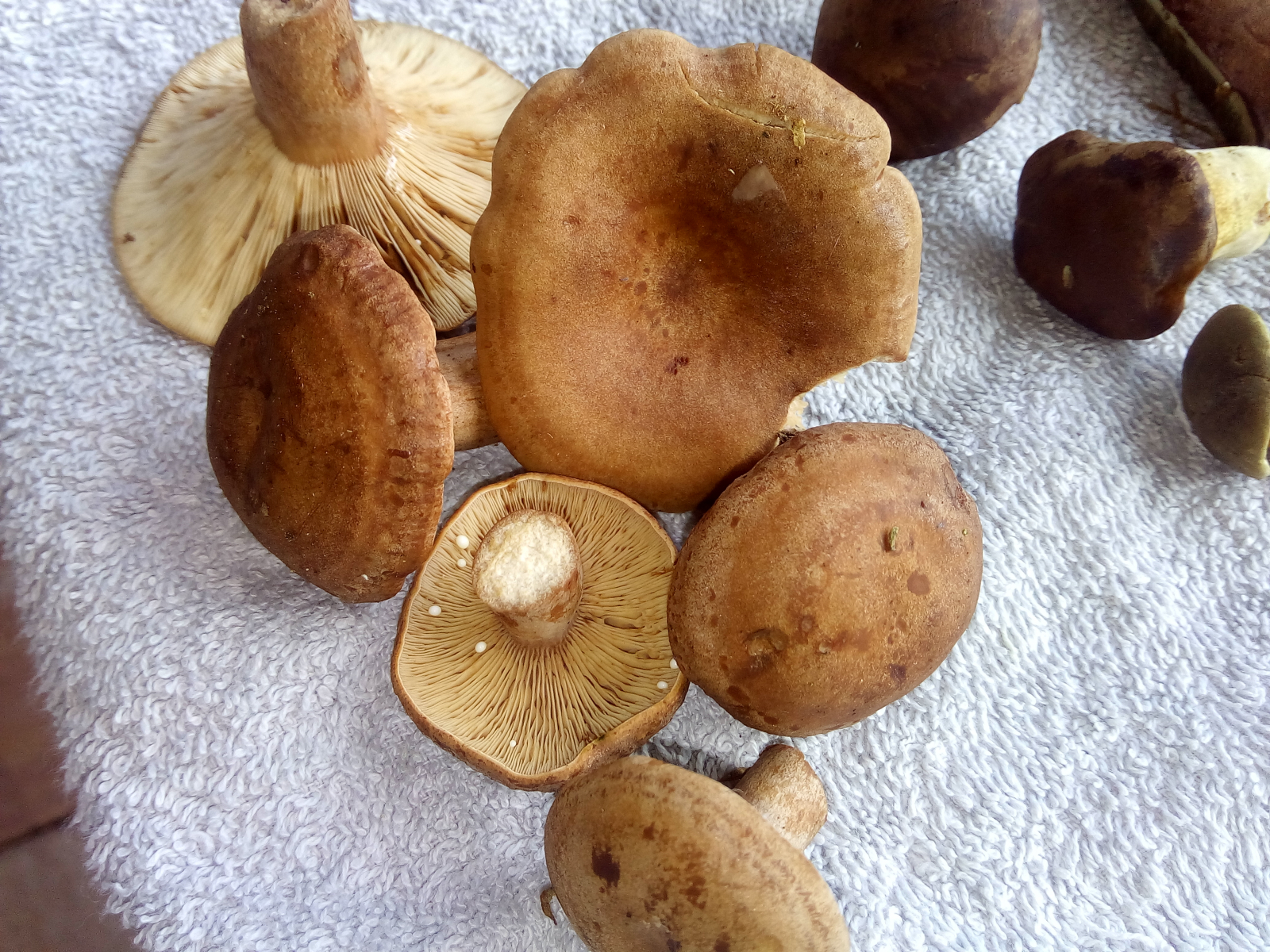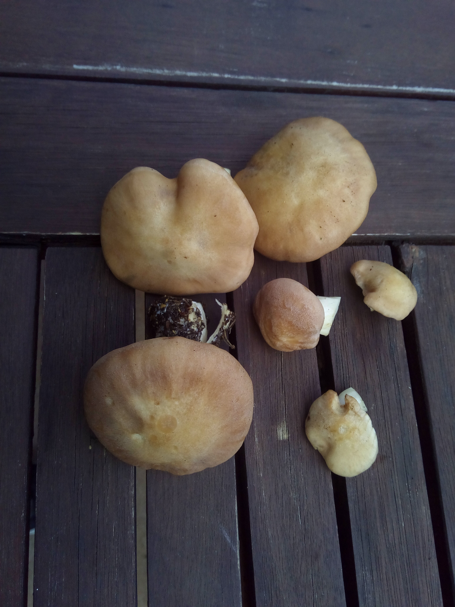Und zu guter letzt, ein interessanter Pilz, von dem ich mehrere gesehen habe aber nur ein Exemplar zur Bestimmung mitgenommen habe. Beim durchschneiden zuhause gesehen dass er madig ist