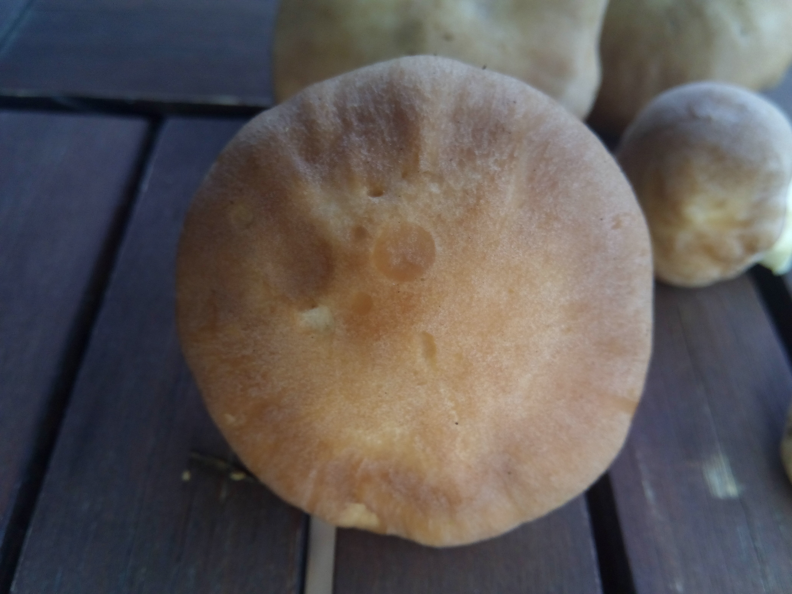 vielleicht könnt ihr mir bei der Bestimmung eines Pilzes helfen welchen ich heute gefunden habe, er hat eine helle bräunliche feste Kappe mit hellen Lamellen.