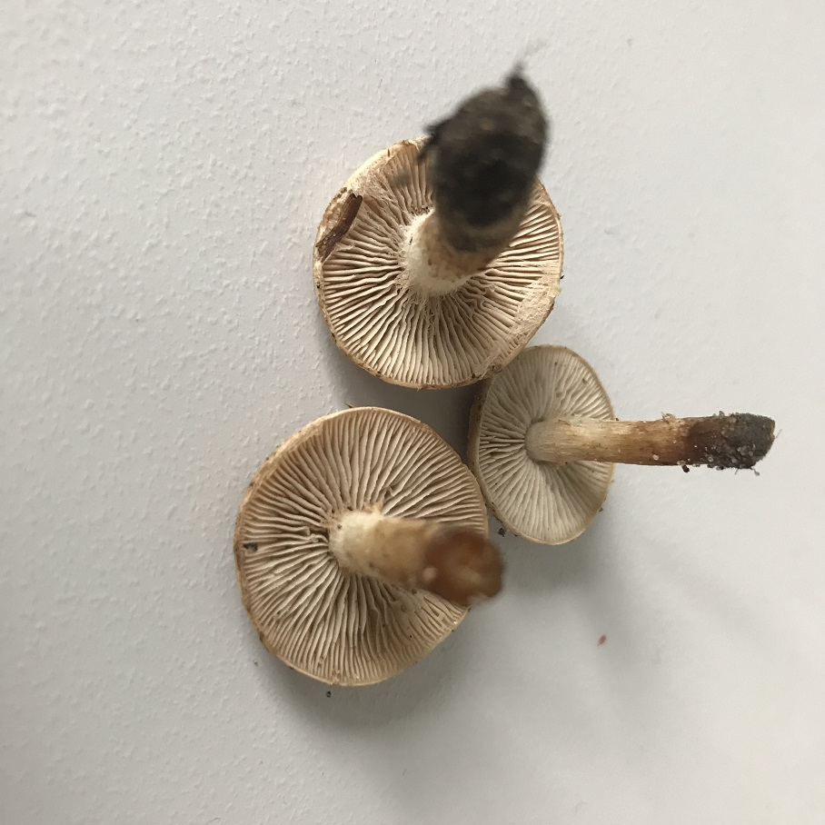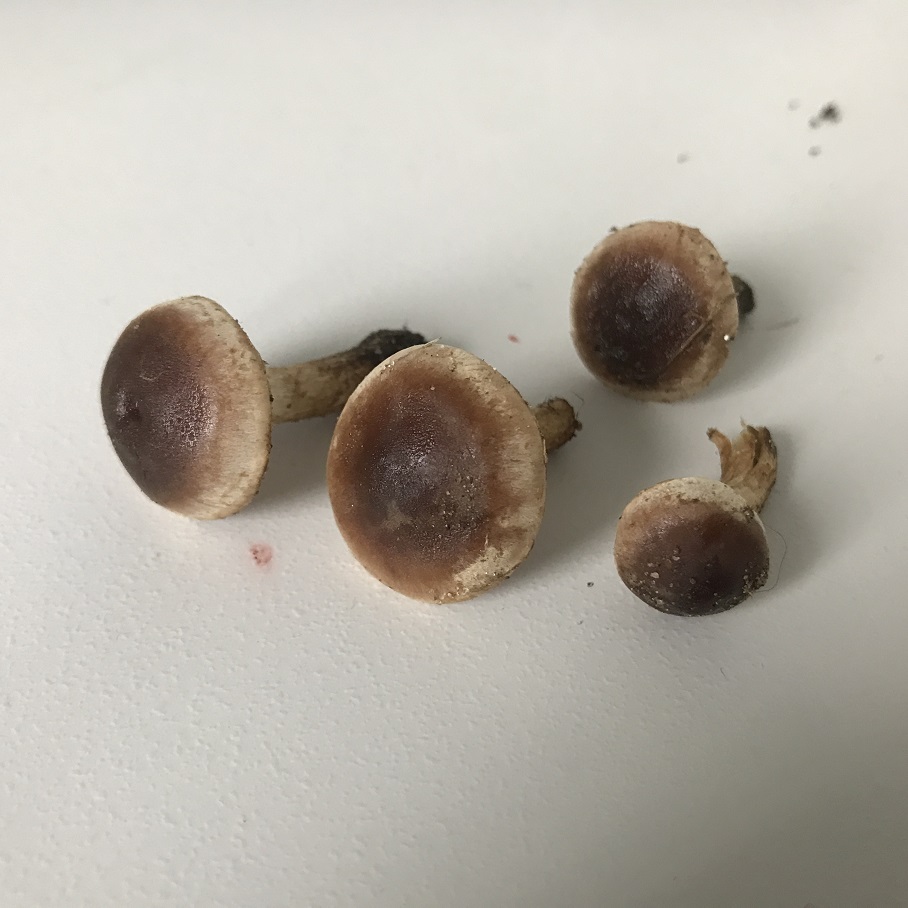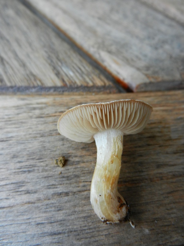 Rein makroskopisch spreche ich diesen Pilz als Dunkelscheibigen Fälbling, Hebeloma mesophaeum an.