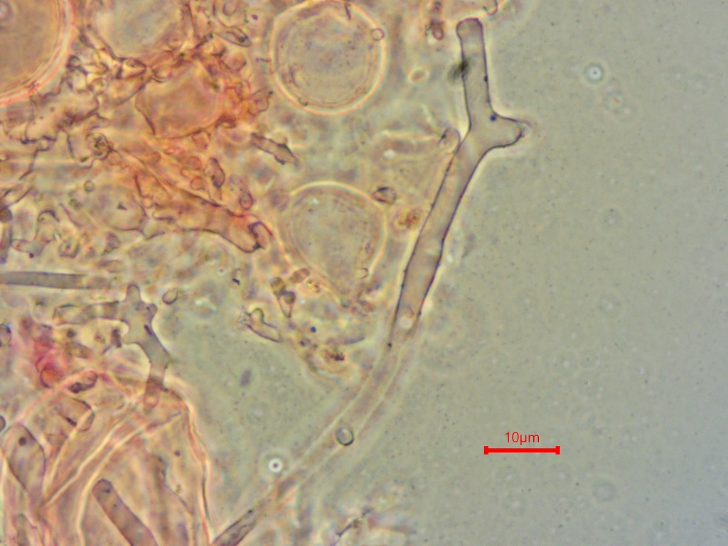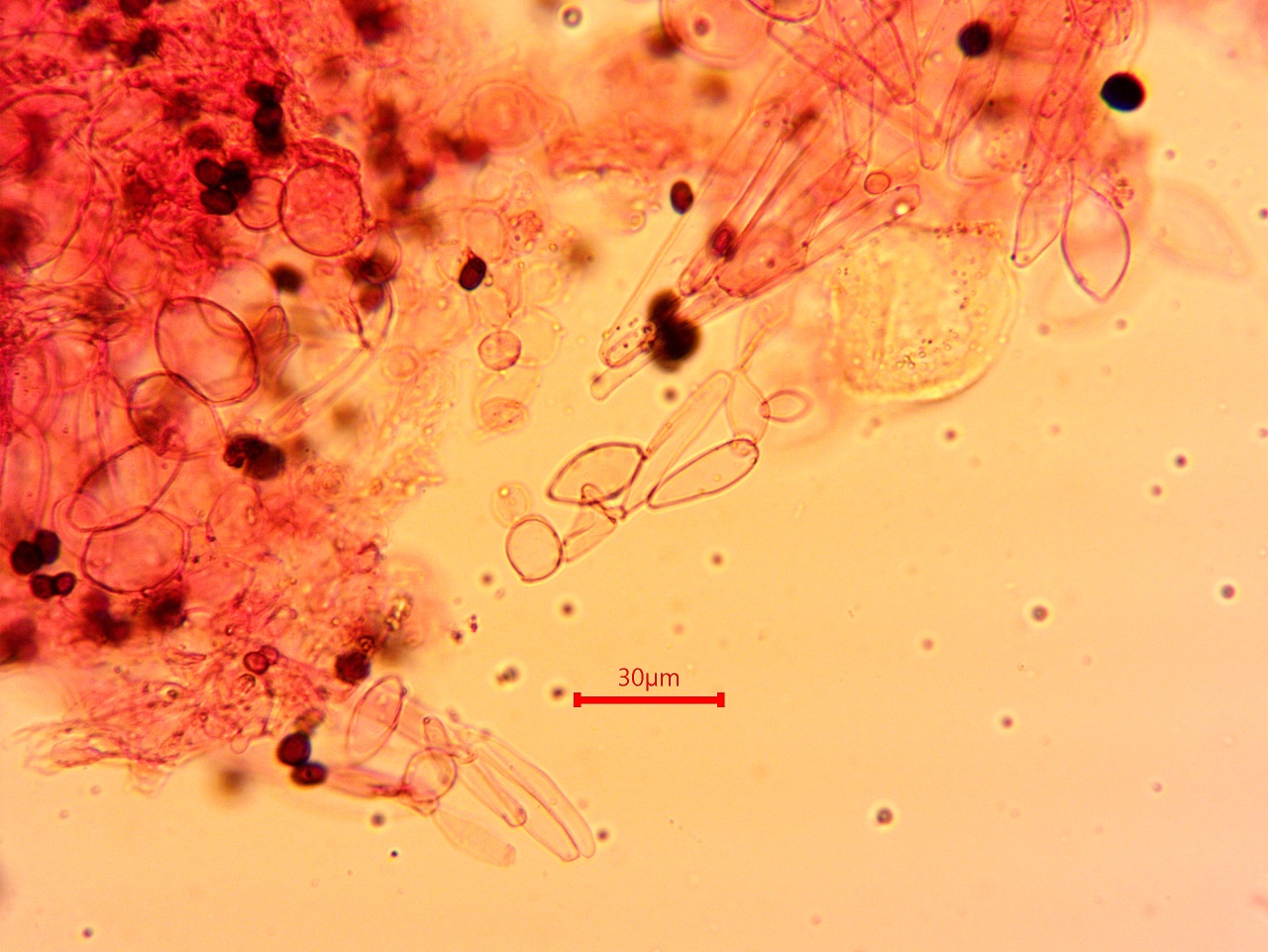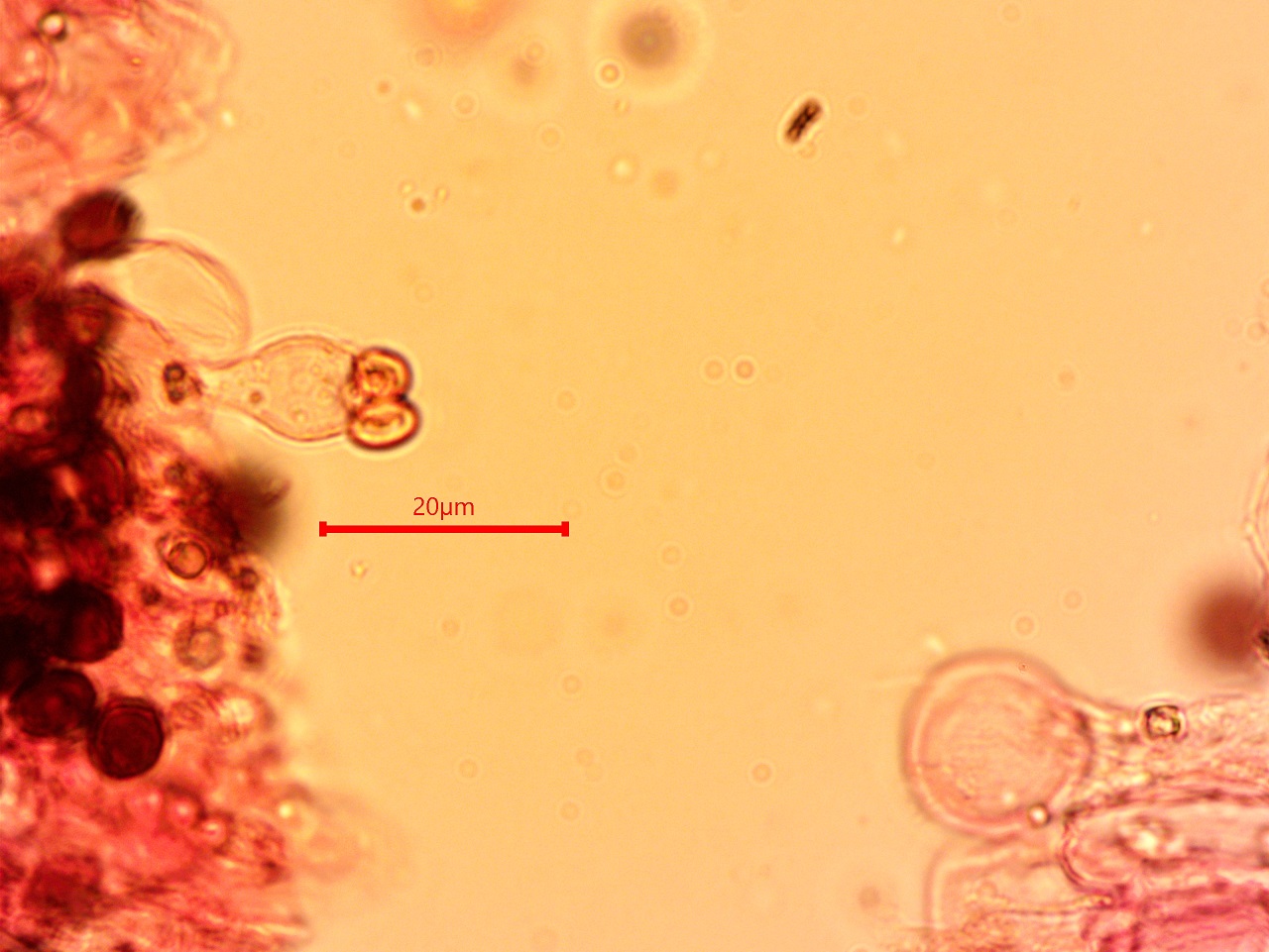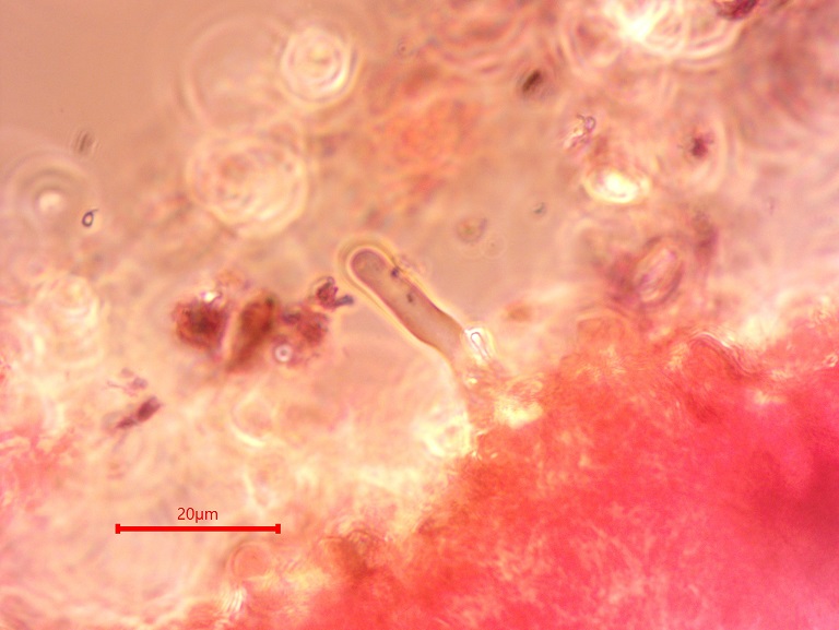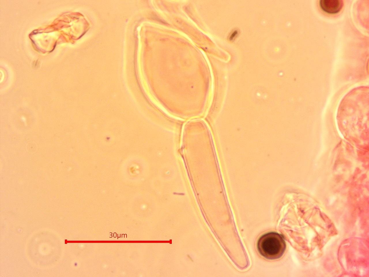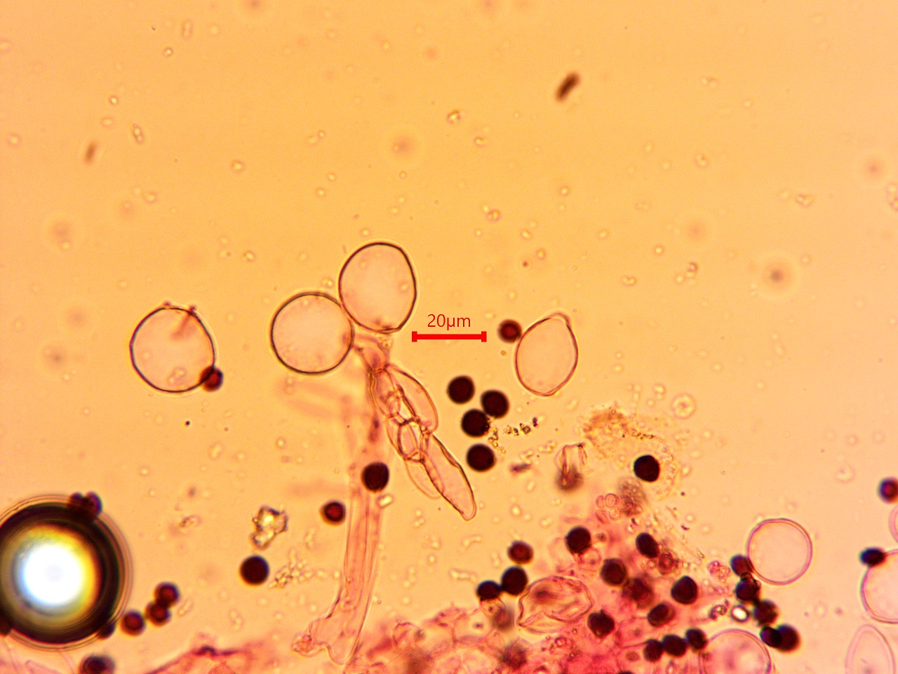 Hutdurchmesser 2cm. Stiel 3, x 0, cm. Sporen 8,6x4,8µm.