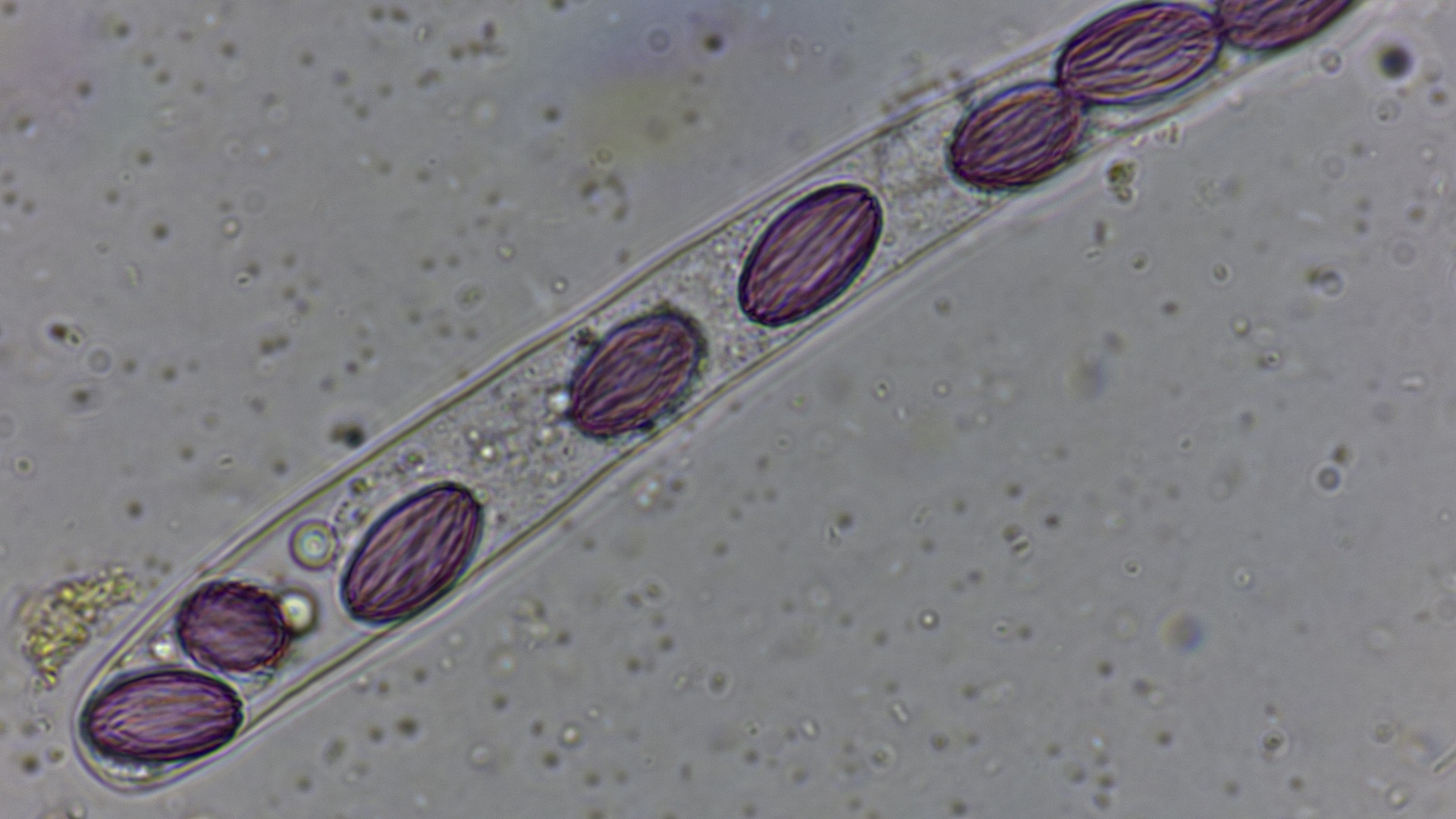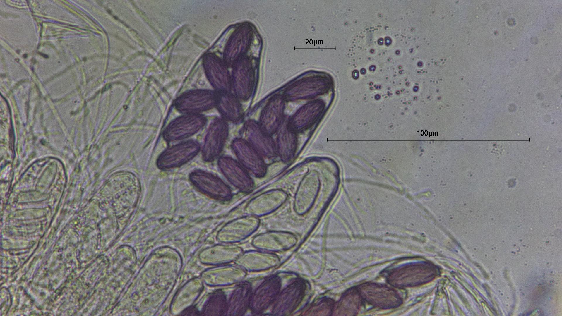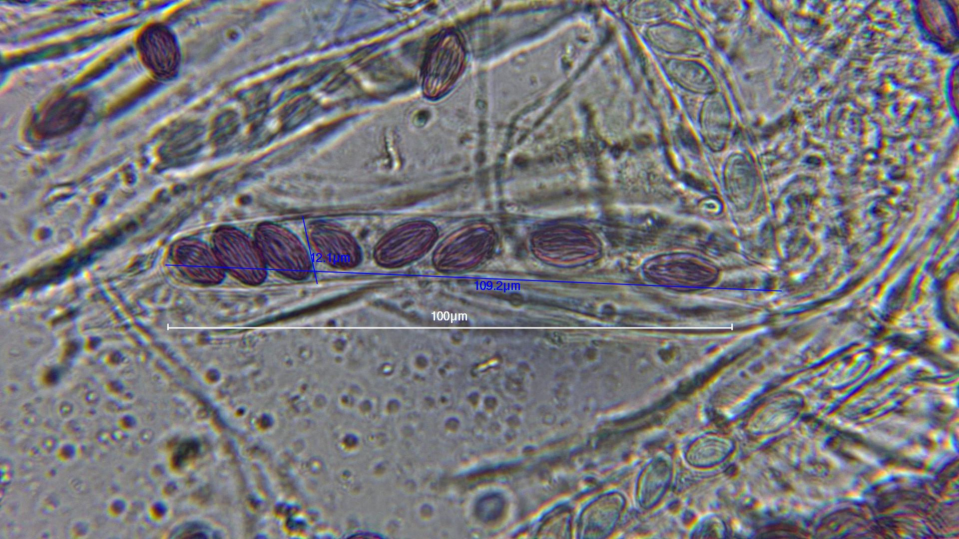 Die Sporen messen 11,6-13,0x6,9-7,6 (außerhalb der Asci gemessen).