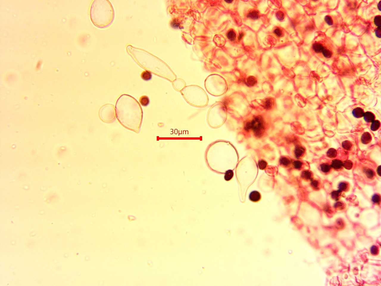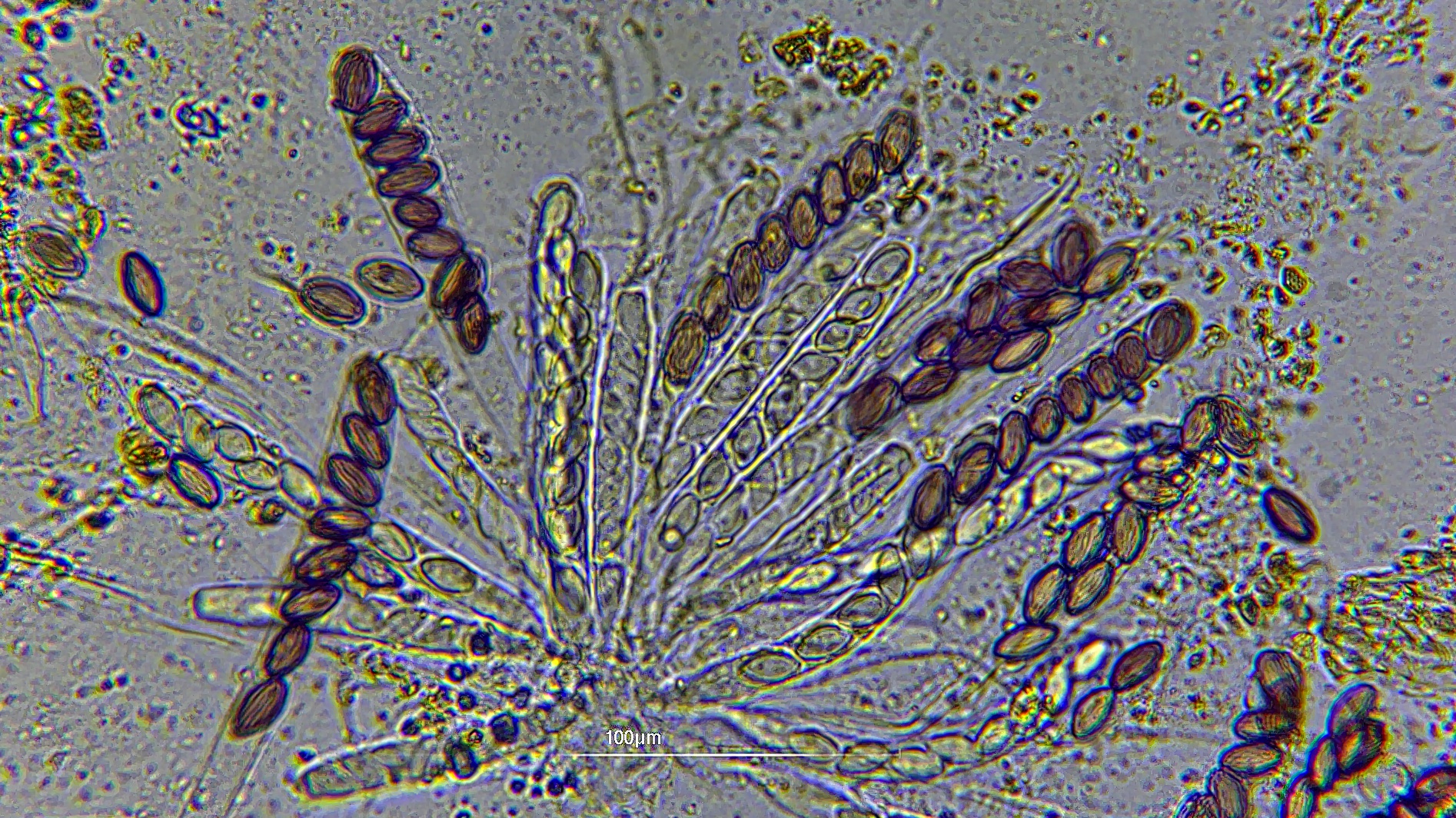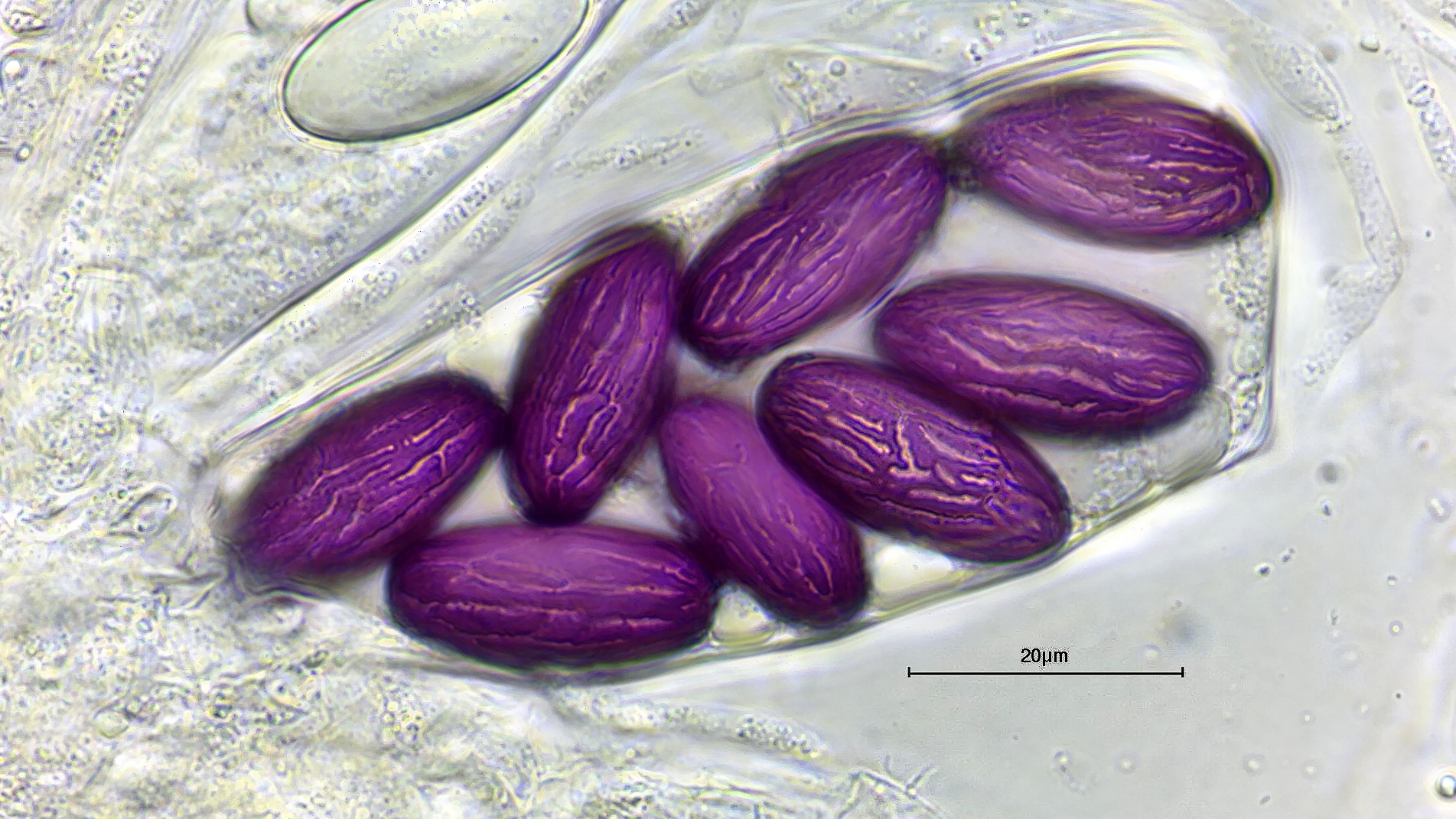 Die Sporen messen 11,6-13,0x6,9-7,6 (außerhalb der Asci gemessen).