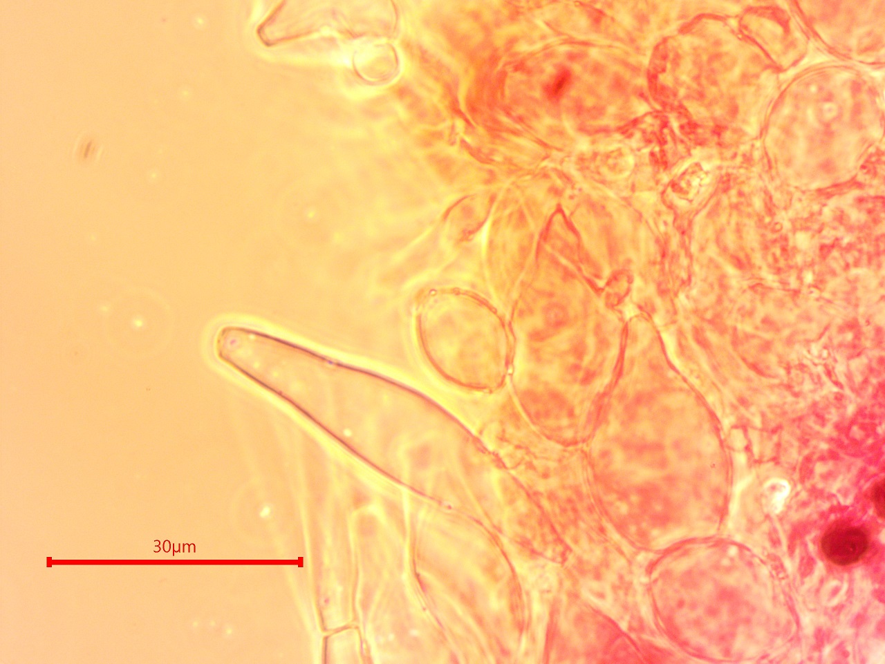 Hutdurchmesser 5cm. Stiel 4,5 x 0,6 cm. Sporen 12,5x6,1µm.