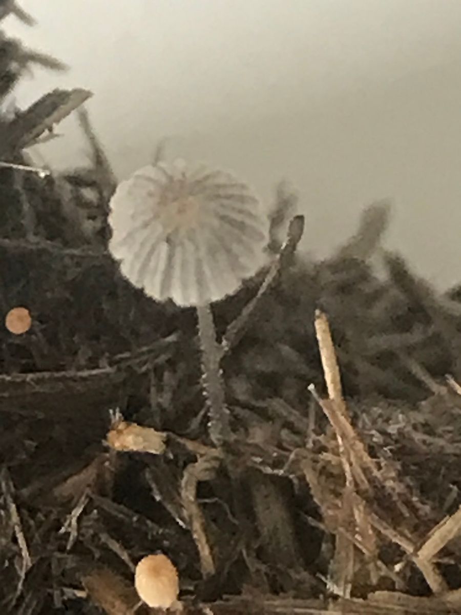 Als es überall noch trocken war, habe ich auf Pferdeäpfeln kleine Pilze gefunden und in einer Tupperdose liebevoll aufgepäppelt.