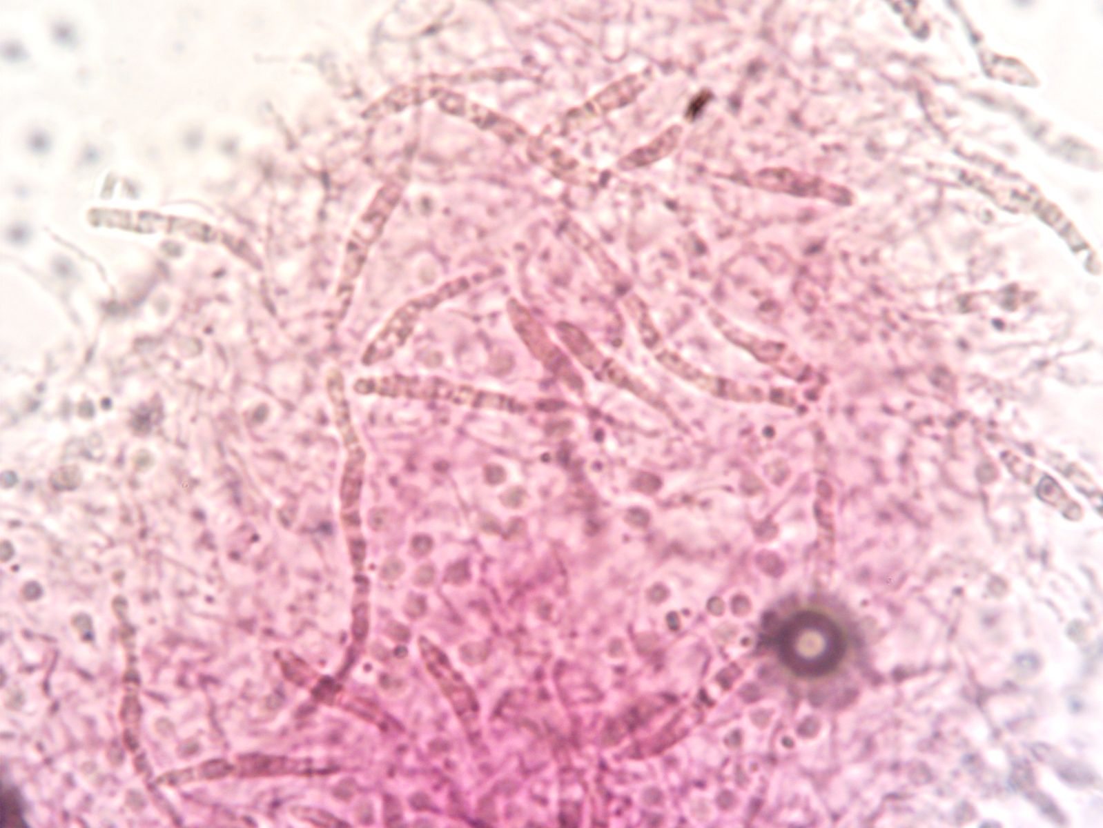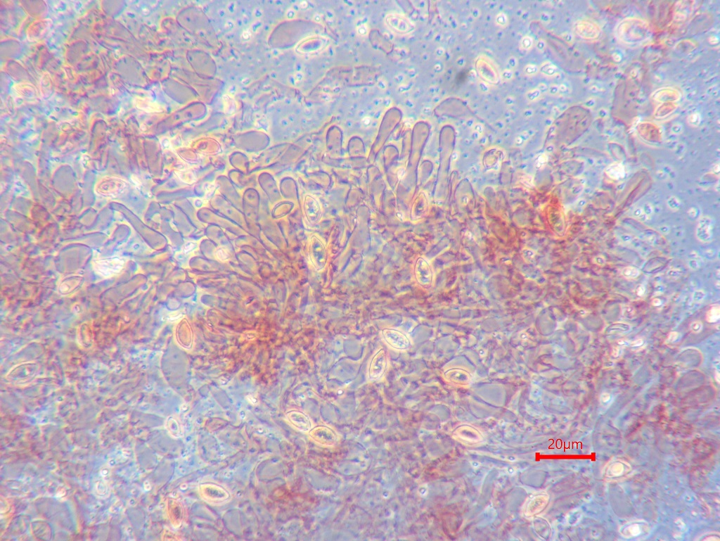 Mikroskopisch passt die Sporengöße und mäßige Warzigkeit.