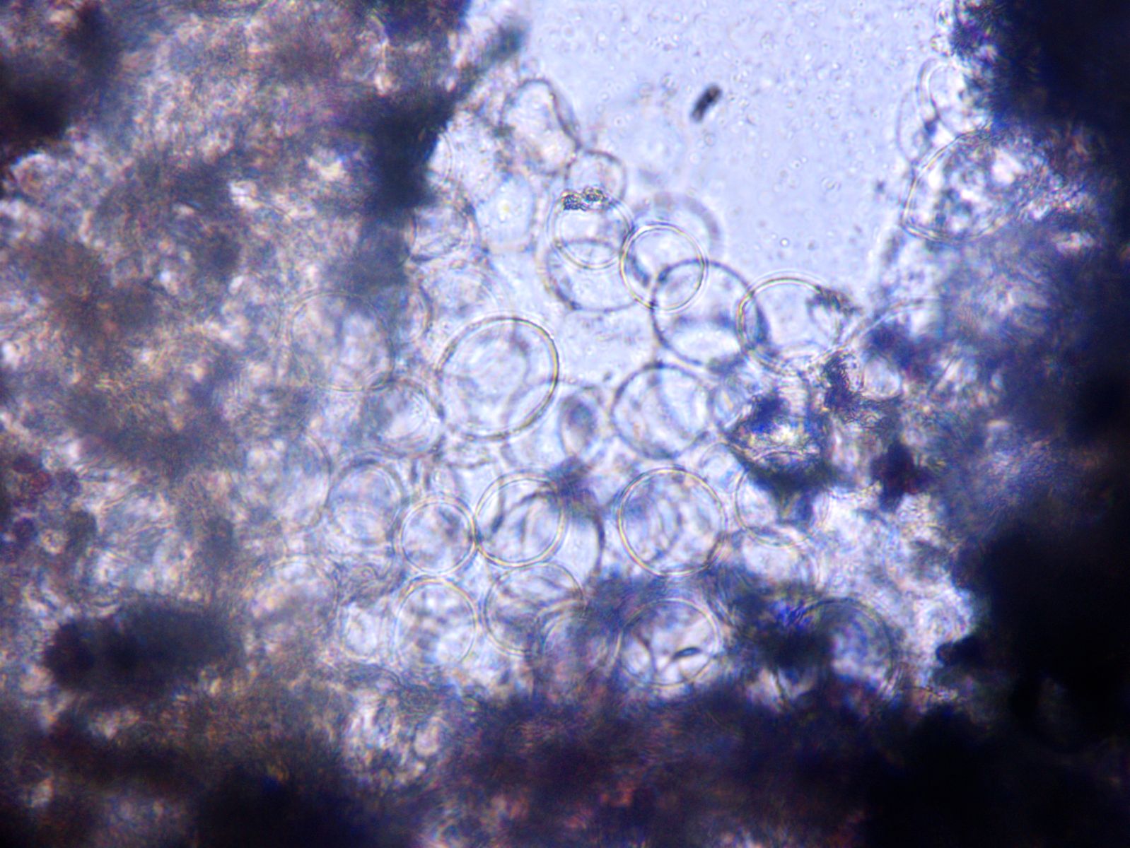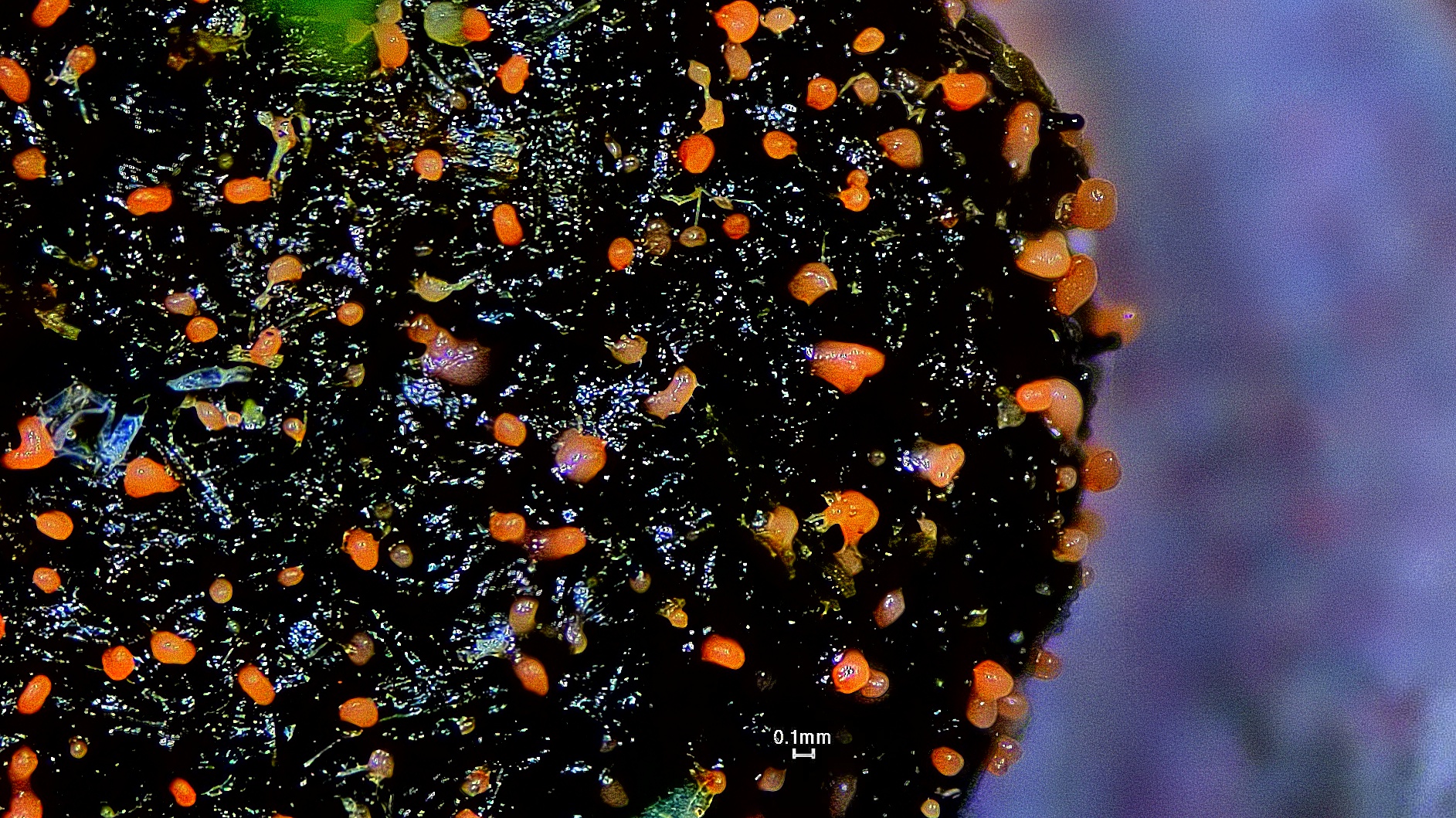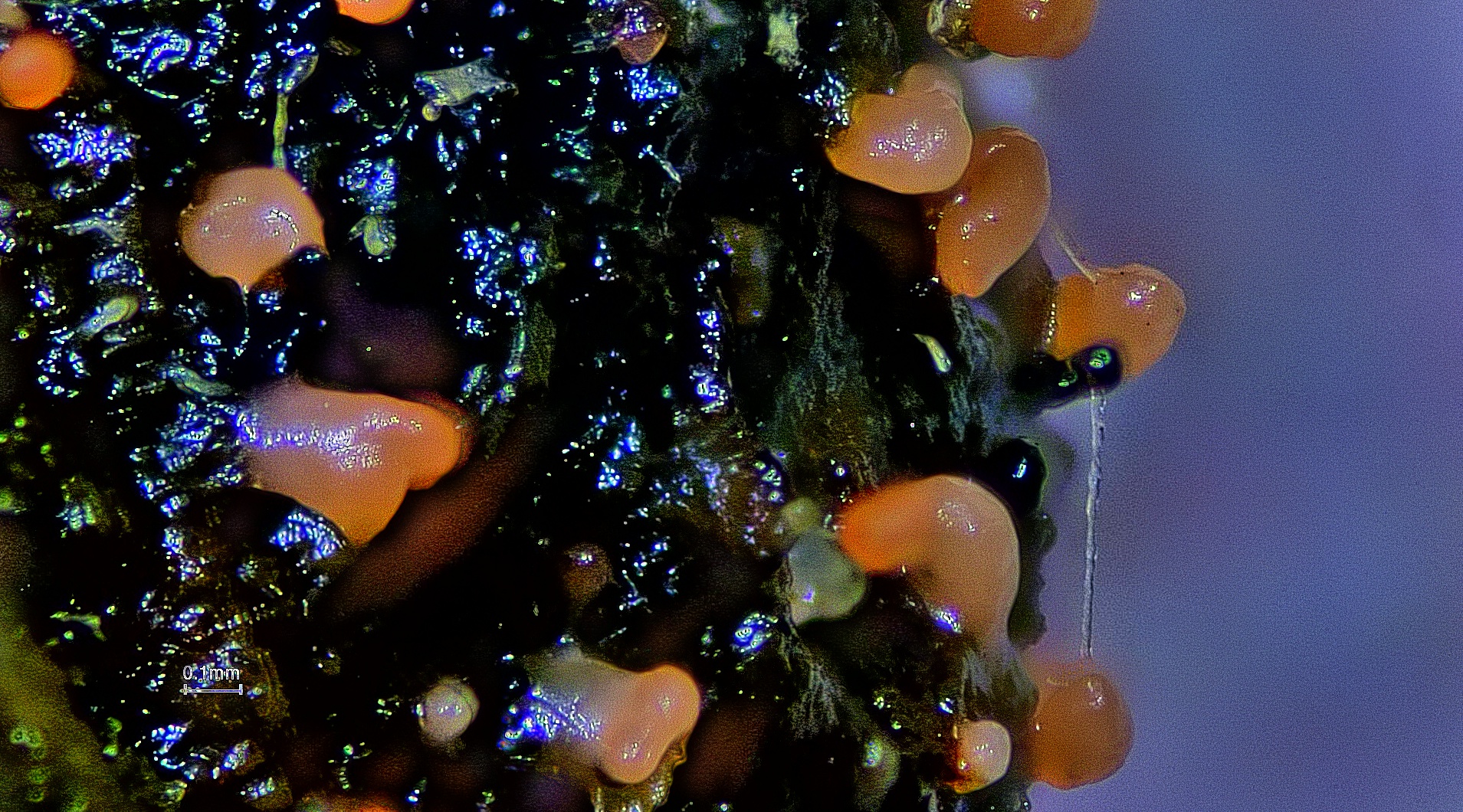Auf Kaninchenködel, die von Norderney mitgebracht habe, entwickeln sich nach eiiger Zeit in der Feuchtekammer winzige rote Punkte, die ich zumächst für Myxomayceten gehalten habe. Bein Mikroskopieren verbleiben eigentlich nur winzige Sporen, ca. 1µm, Die einen Myxomyceten wohl ausschließen. Die Sporen deite ich als Konidiensporen einer Nebenfruchtform, aber welche und von welchem Pilz. Hier enden meine Erfahrungen und meine Literatur. Wer kann mir helfen?