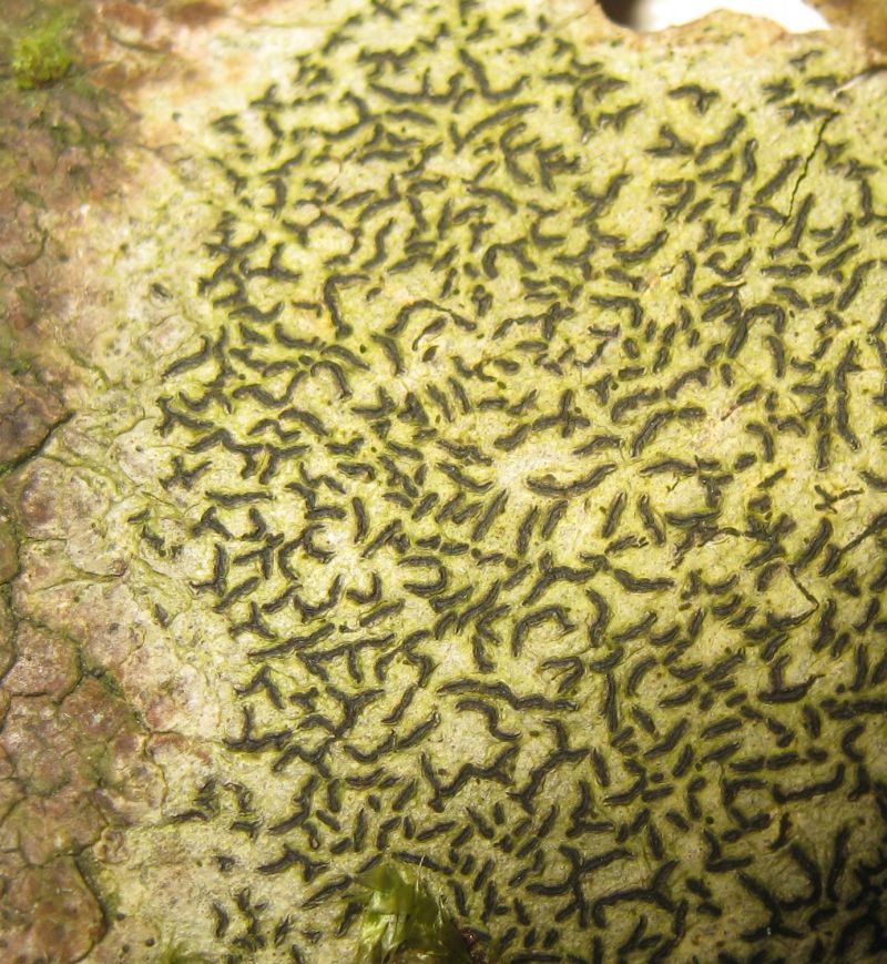 Graphis scripta?Lecanora spec.