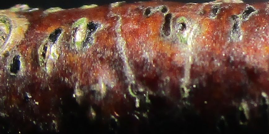 bei meinen Versuchen, Pyrenomyceten zu finden und dann auch noch zu bestimmen, bin ich an einem etwa fingerdicken Zweig vom Bergahorn (Acer pseudoplatanus) auf das hier gestoßen.