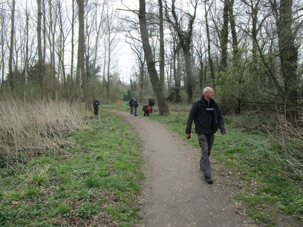 Und damit es nicht langweilig wird, haben wir es so aussehen lassen, als wären es mehrere Arten (am Ende doch alles Peziza micropus)Wenige Meter weiter im Auwald an der Düssel einige pflanzliche Highlights: Gelbes Buschwindröschen (Anemone ranunculoides, im Bildvordergrund rechts), Bärlauch (Allium ursinum), auf dem Mario gleich einen in Pilze Deutschlands nur einmal nachgewiesenen Rostpilz (Caeoma allii-ursini) finden konnte, "fette" Hirschzungenfarne (Asplenium scolopendrium) usw.