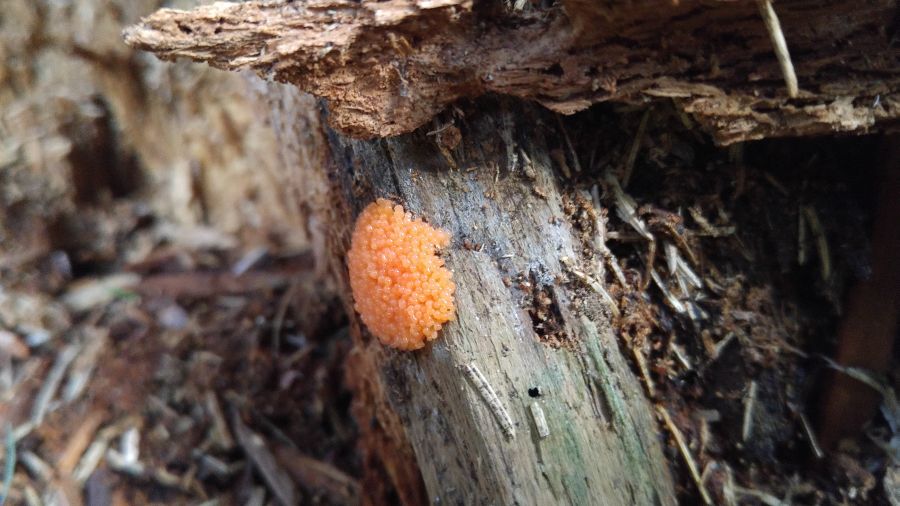 Und wow, dieser "Schleimpilz", hätte schwören können es sind Eier. Schön nebeneinander abgelegt der Reihe nach, ohne Raum dazwischen und ohne Überlagerung. Ich gehe von "Trichia" aus, da gibt es welche die sehen gleich aus. Schade, wüsste gerne was aus denen nun geworden ist.