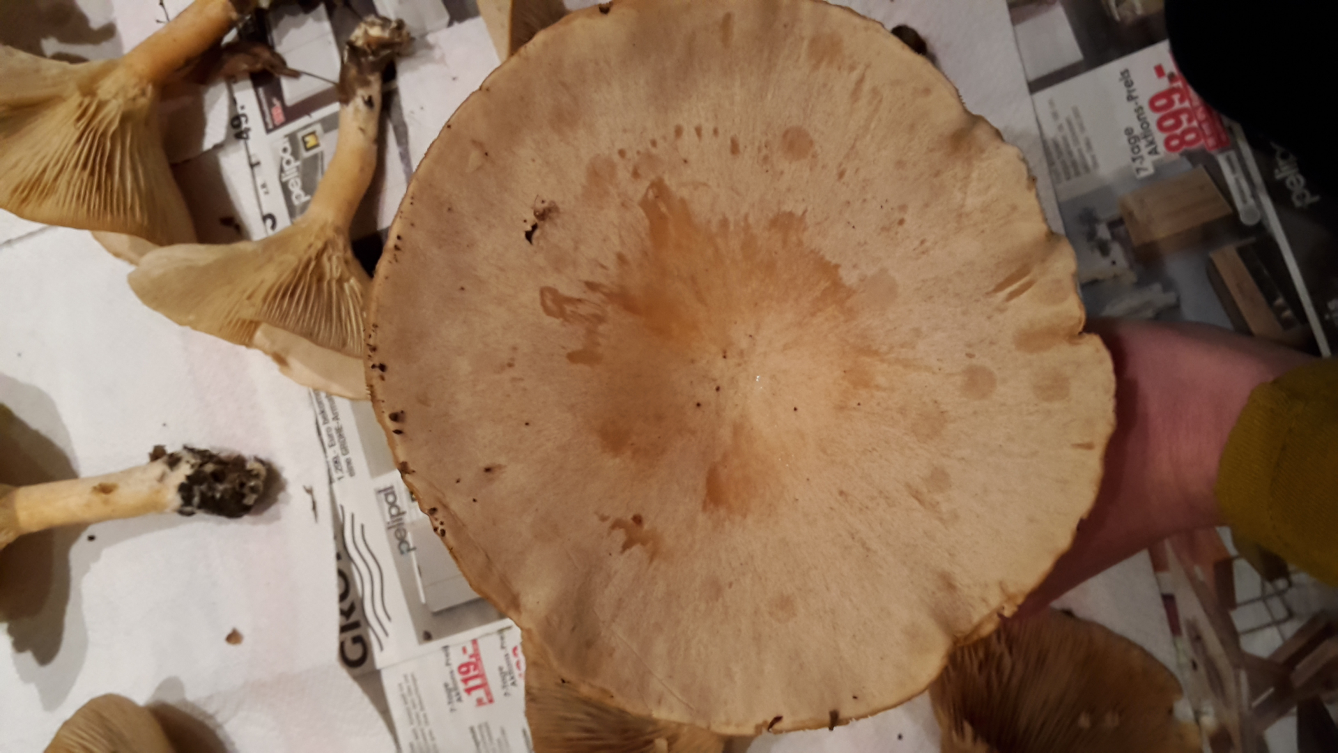 Wir dachten es wäre eventuell CLITOCYBE PHYLLOPHILAAußerdem waren einige von den Pilzen gefroren, wohl von letzter Nacht. Macht das was aus?