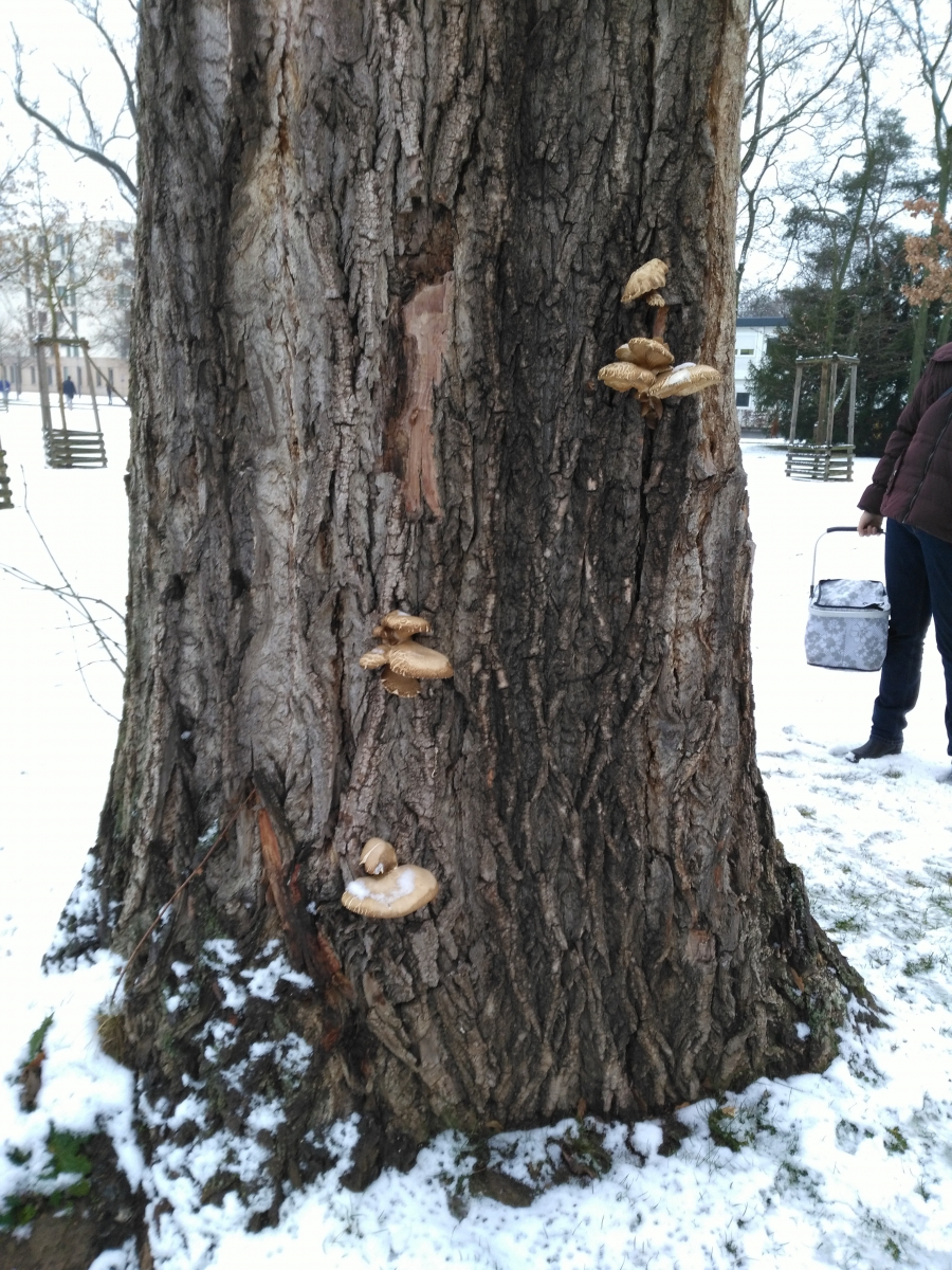 bin da über ein paar Pilze an einer Pappel gestolpert, die ich leider nicht eindeutig zuordnen kann - tippe auf den Pappel Schüppling (aber wächst der nicht eigentlich an totem Holz, bzw. auf Weißfäule) - was meint Ihr? Er scheint in der Rinde zu sitzen (da ich davon noch nichts gelesen habe, tippe ich jedoch drauf, dass die Rinde möglicherweise an den Stellen aufgerissen ist und das Holz frei liegt - man es nur nicht sieht). Im Oktober war von den Fruchtkörpern noch nichts zu sehen, im Dezember waren es nur kleine Ansätze, jetzt haben sie ne stattliche Größe - die großen Fruchtkörper haben knappe 10 cm - das Fruchtfleisch ist fast weiß/ganz hell creme farben- erinnert mich irgendwie an einen Champingon - probiert hab ich nicht).