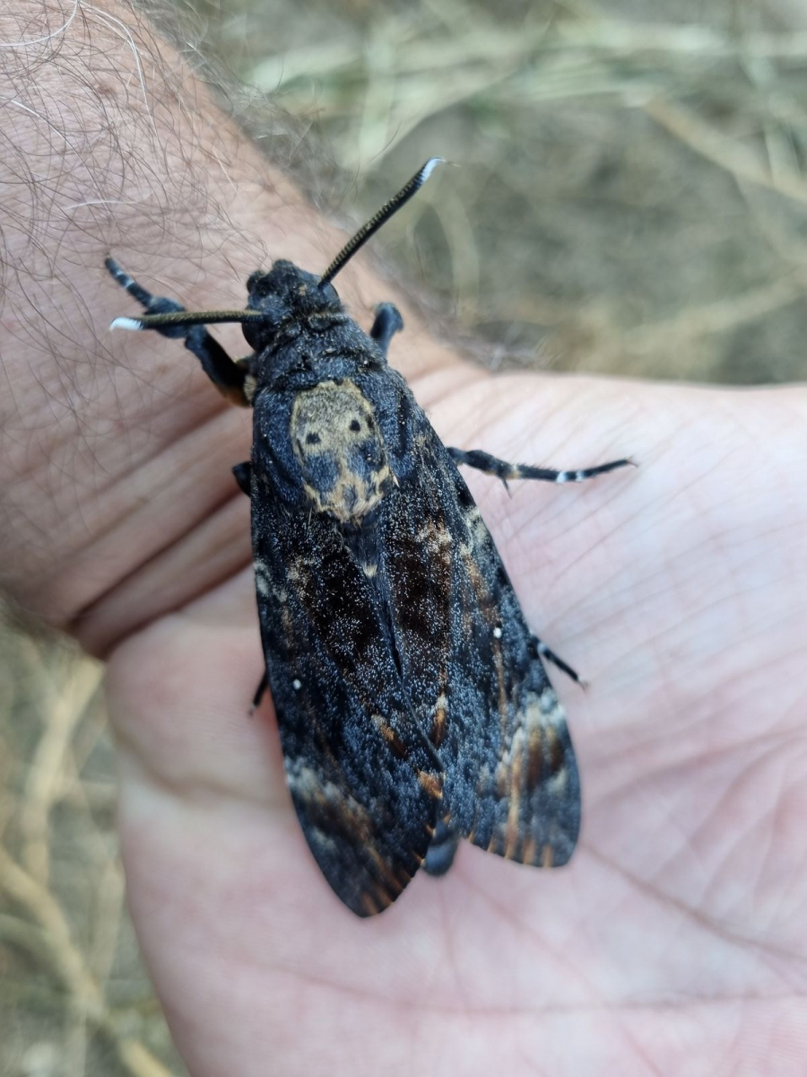 heute am Erdäpfelacker einen Totenkopfschwärmer gefunden.