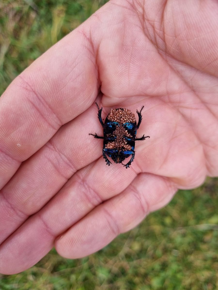 Ein mistkäfer auf einer weide, schon ziemlich langsam unterwegs. Hab mir gedacht es ist wegen der kälte...