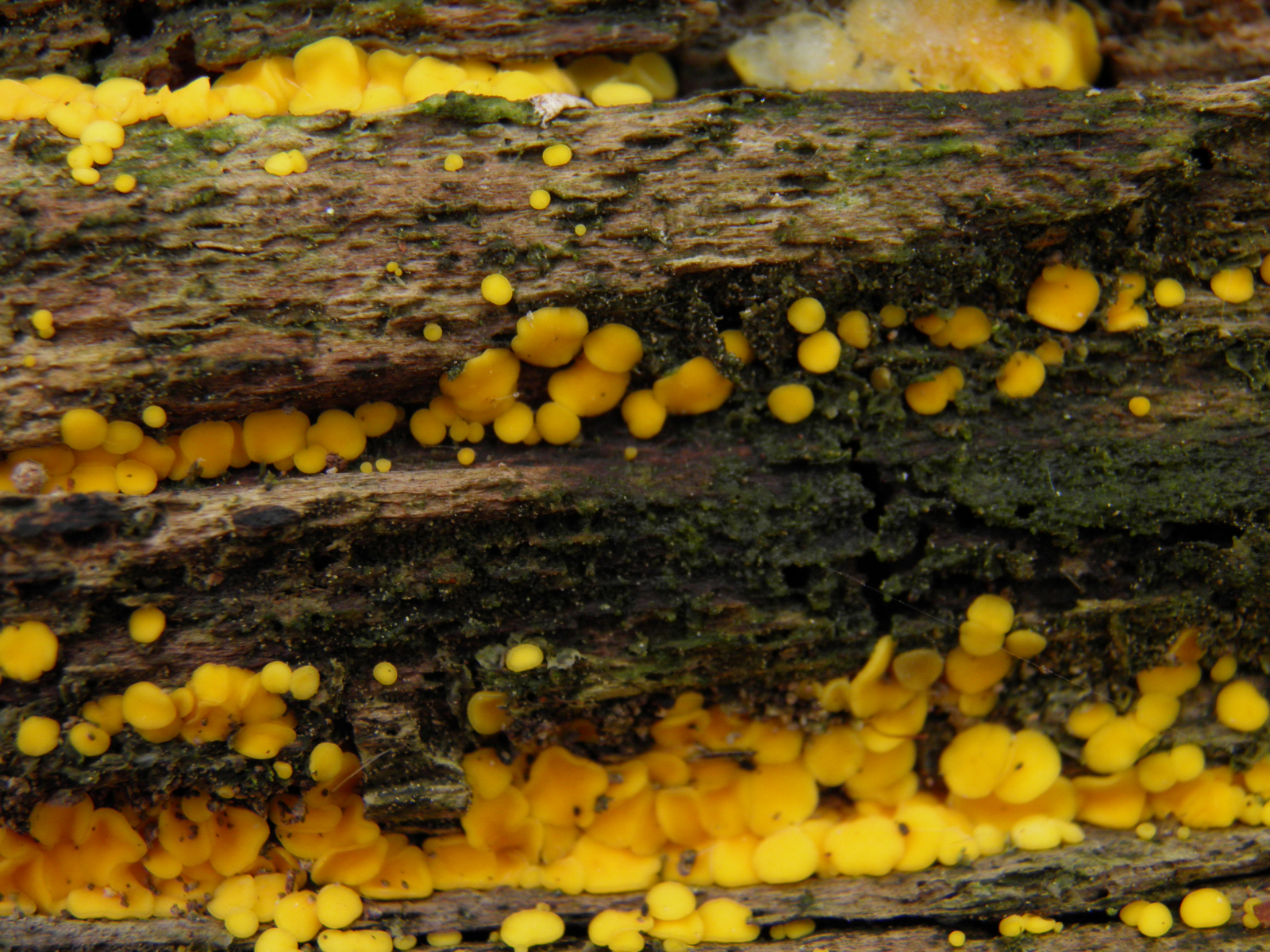 gelbe becherchen an buchentotholz (vlt zitronengelbes Reisigbecherchen/ohne mikro nix genaues)