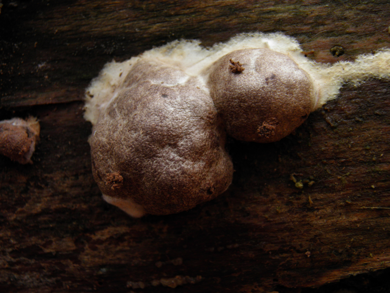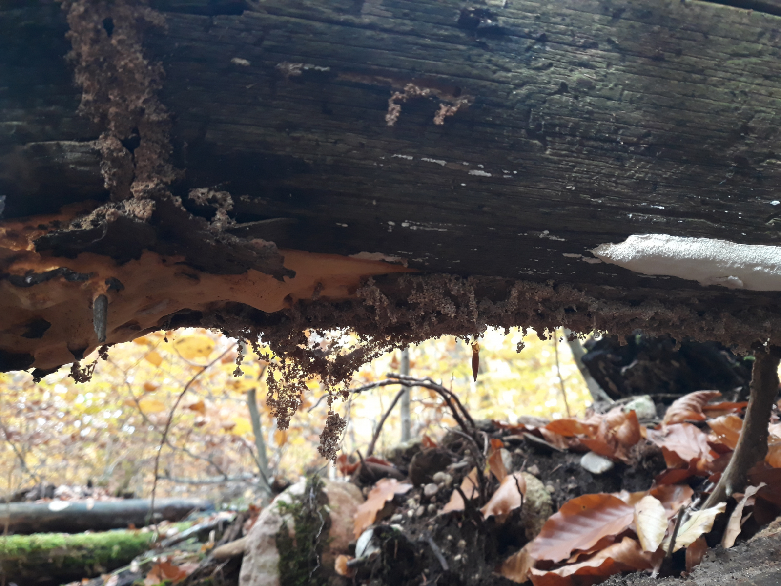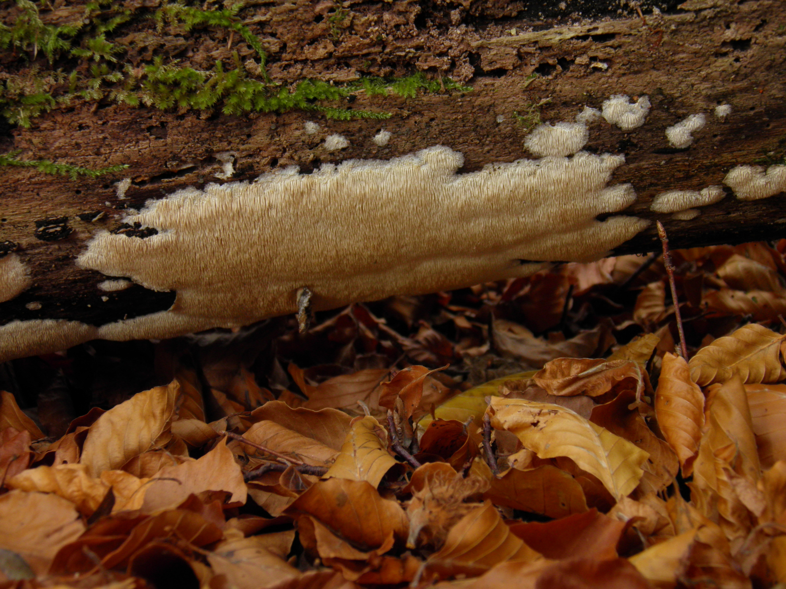 an Unterseite einer liegenden morschen Fichte Ende September mglw. Cineromyces lindbladii