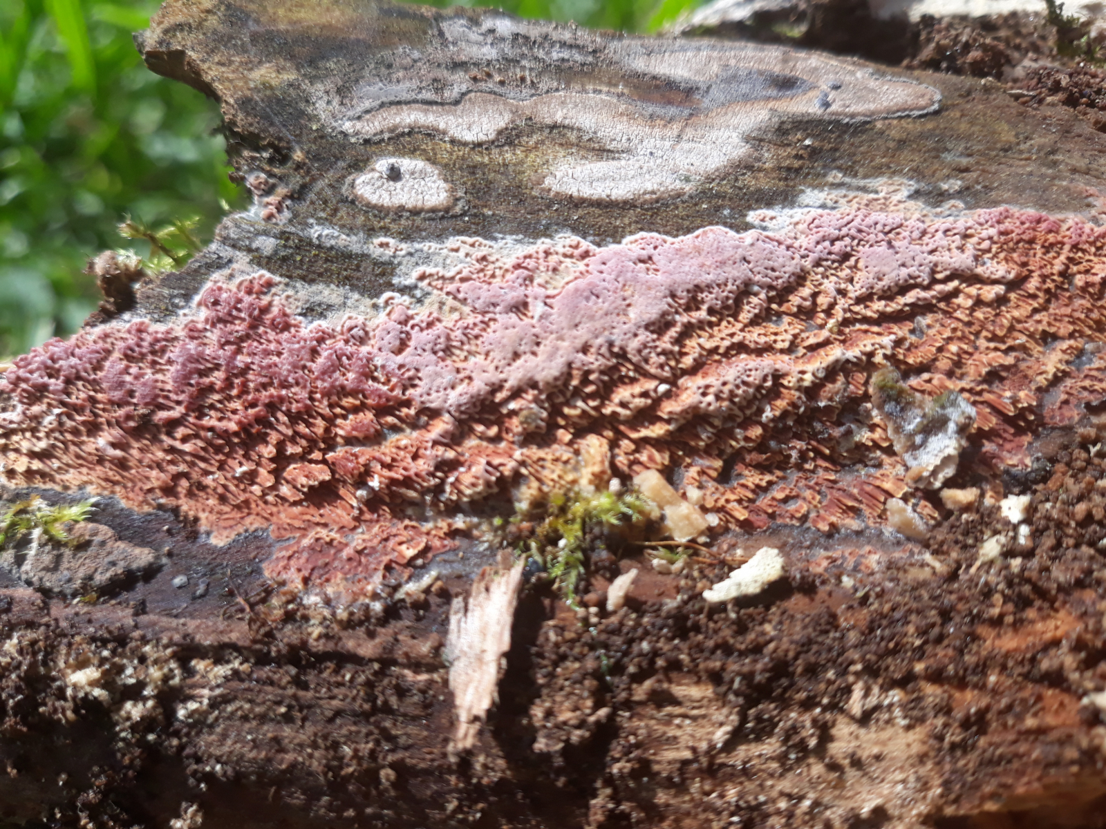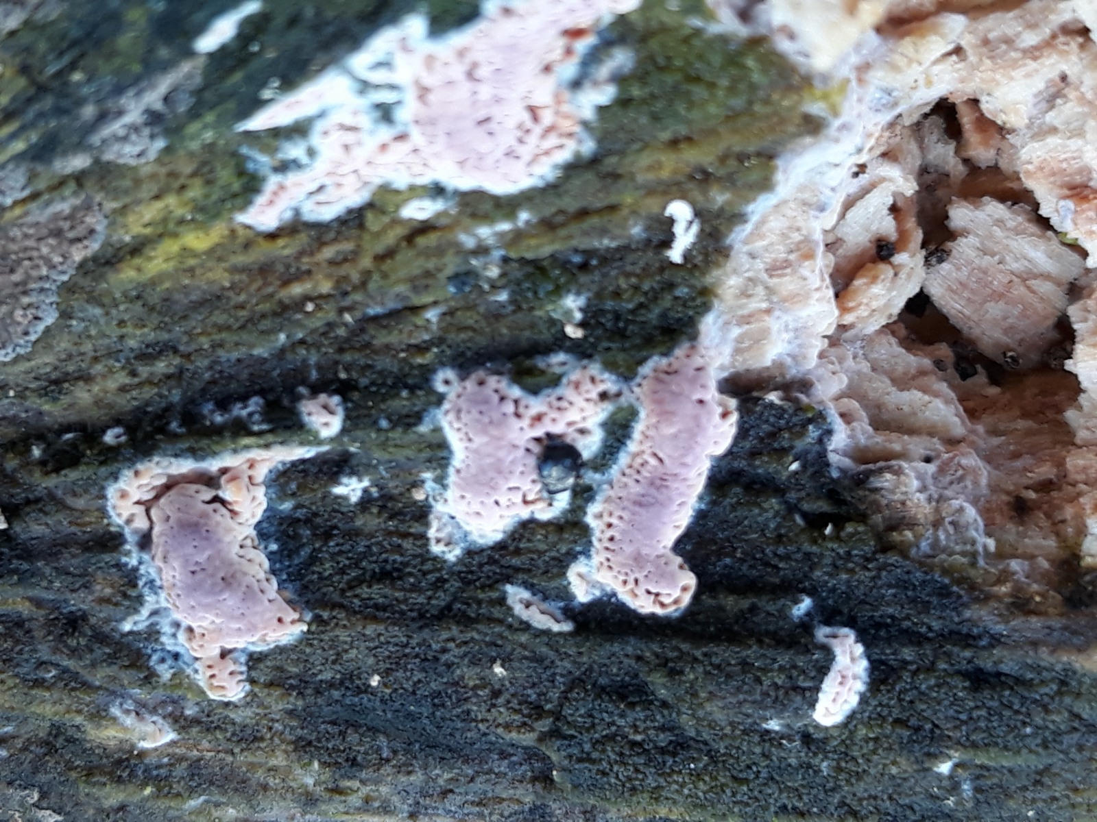 Selber trete ich bei der Bestimmung von Rindenpilzen auf der makroskopischen Stelle- zum Glück hat Pablo wieder einmal angeboten über meine Funde drüber zu schauen.