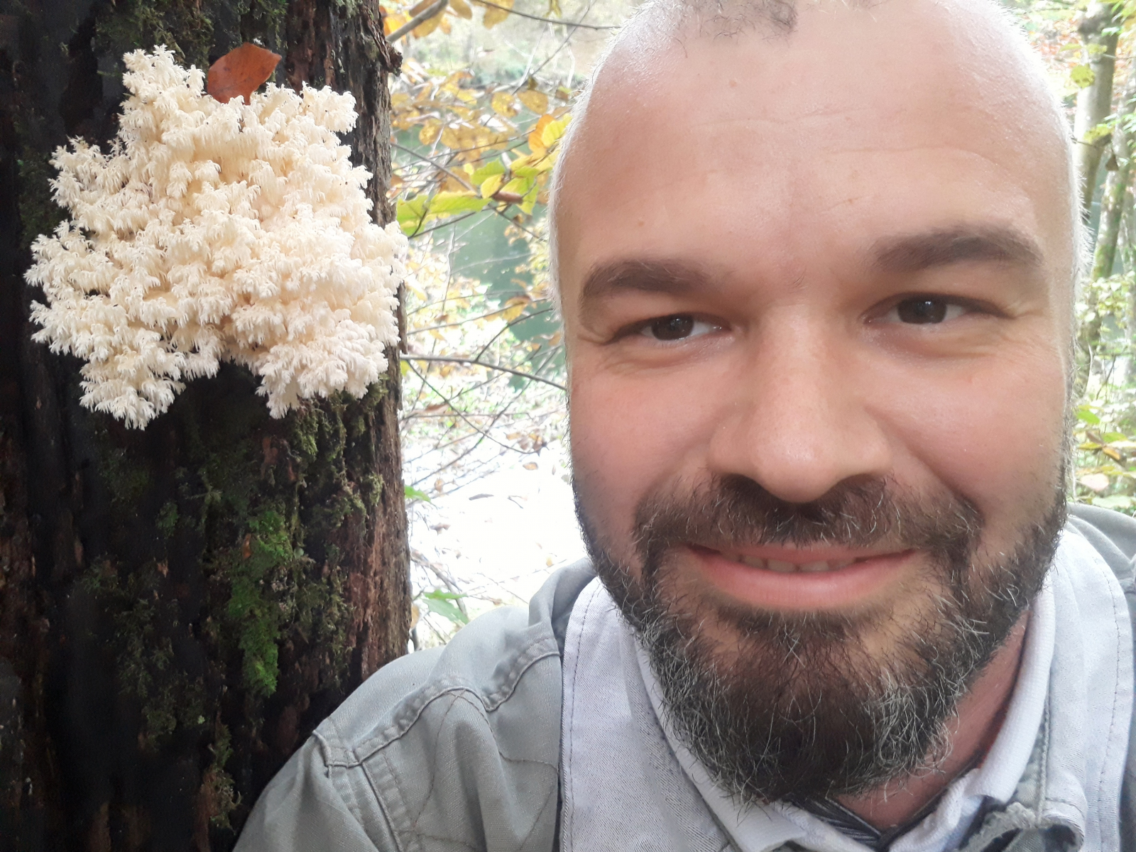 der nächste Fund ist ein dünner Zahnbelag an der Unterseite einer ebenfalls sehr morschen Buche/Geruch unbedeutend, keinerlei Verfärbungen