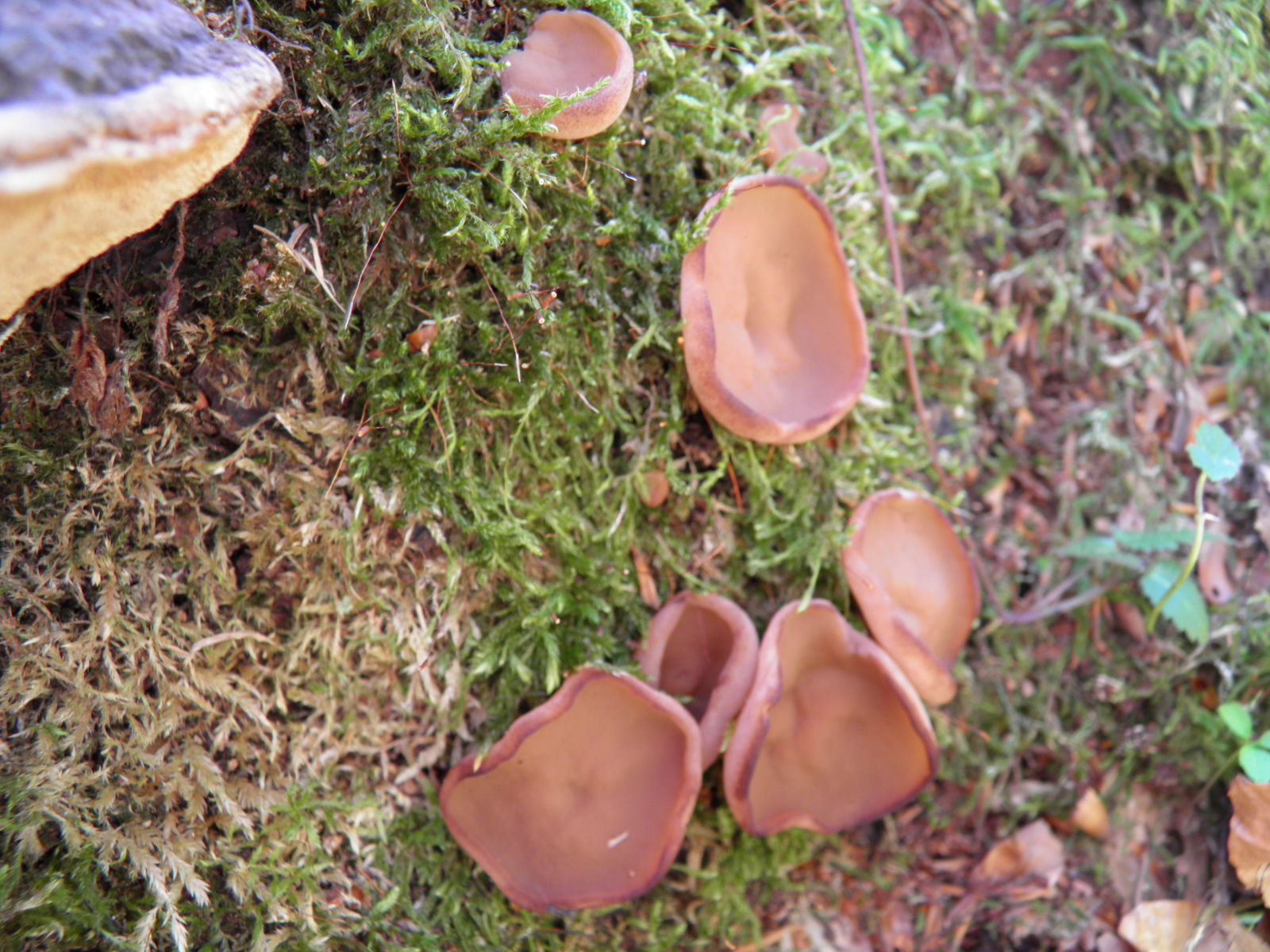den porling halt ich für den rotrandigen baumschwamm, der becherling könnte ein erlenkätzchenbecherling sein (schaut auf bild 2 so aus als ob er an einem "kätzchen" wachsen würden. maiporling passt.