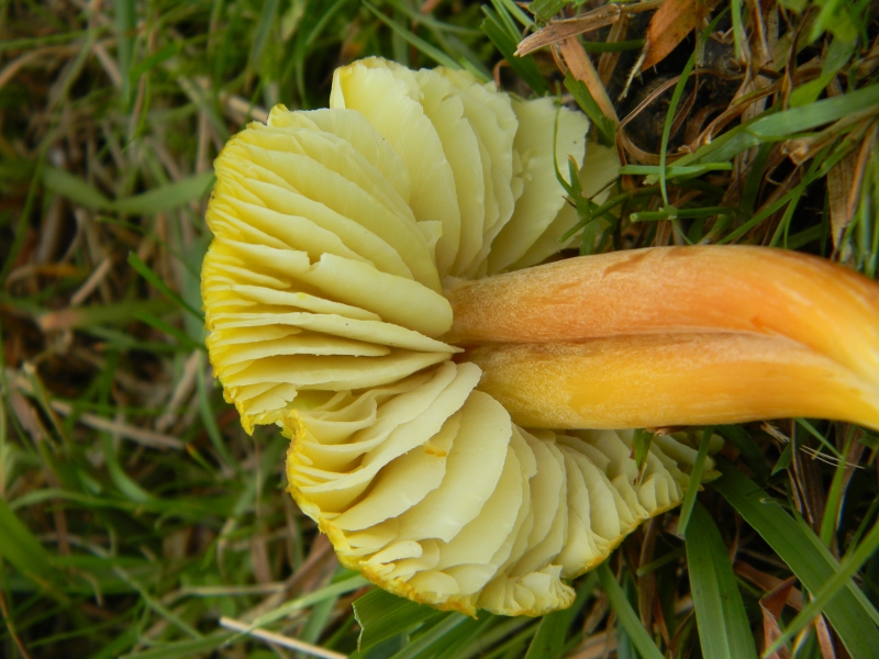 Durchmesser des Hutes des größten Fruchtkörpers der Dreier-Gruppe ca. 20 cm.