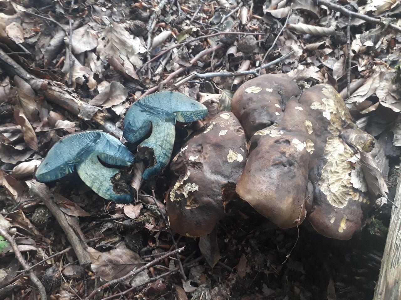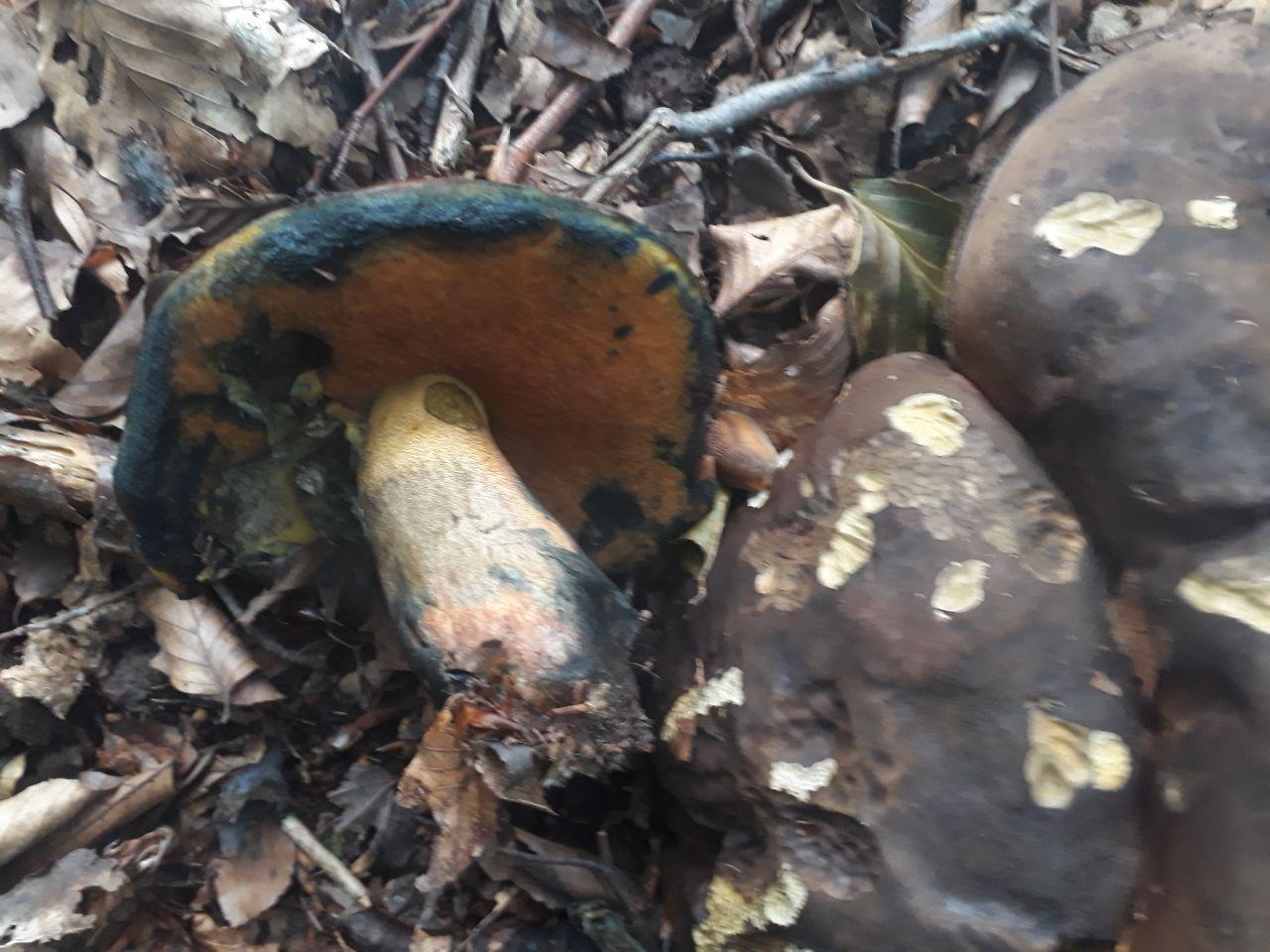 Einen Tipp, was für eine Art aus meiner Sicht in Frage kommen könnte, möchte ich lieber nicht abgeben. Für B. erythropus waren mir aber die Röhren zu wenig rötlich (wobei das bei meiner "Expertise" was diese Gruppe angeht nicht unbedingt was heißen muss). Die anderen beiden Fruchtkörper habe ich nicht herausgenommen, dazu kann ich nichts weiter sagen.