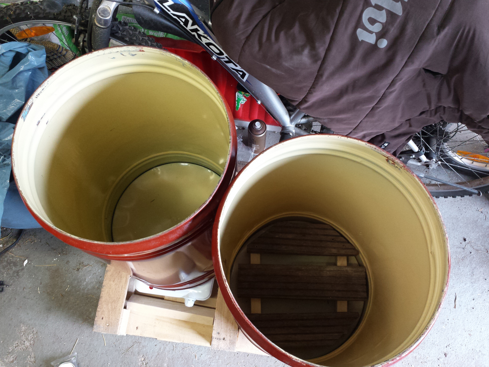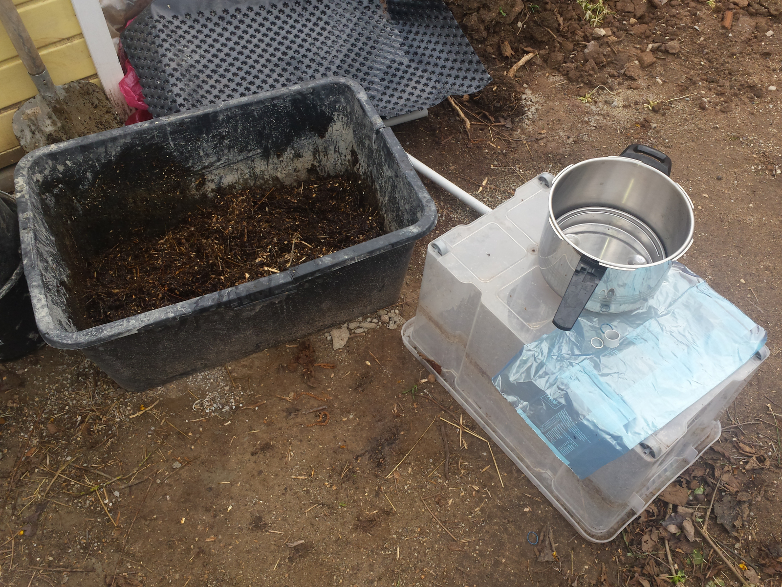 Für das Klonen (Petris und Roggen) habe ich auch 2 Kunststoffbehälter (ich glaube es waren 45 Liter), einen Deckel und eine Aquarienheizung besorgt (ca 35 euro). Eine Kiste + Deckel davon habe ich dunkel Braun lackiert (hatte kein Schwarz, aber das steht dann im dunklen Keller also sollte das schon klappen).