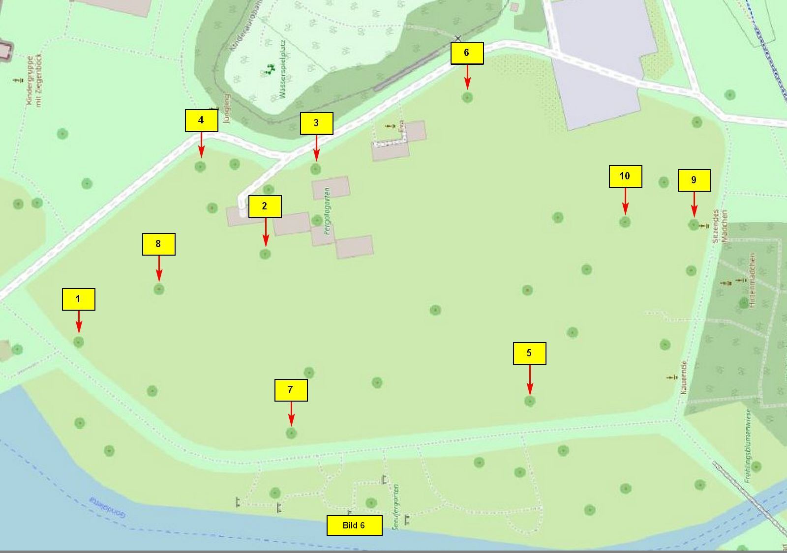 Bild 6 zeigt eine Auswahl von zehn Bäumen, die für den Punktlayer relevant sein sollen. Sie sind von 1-10 durchnumeriert. Hier das Excel-File dazu: baeume.xls