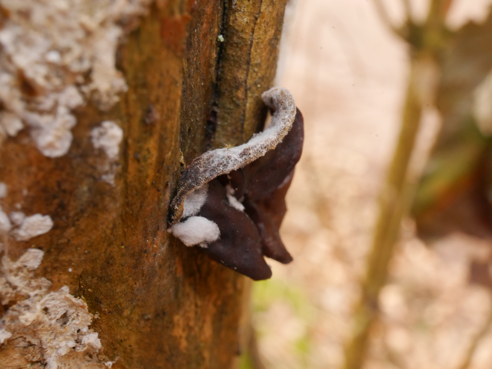 Auch wenn der aus Holzspalten rauswächst, ist der Habitus schon noch anders. Wie auch beim Biber (Lentinellus castoreus), wo ich immer noch kein schlüssiges Konzept kenne, um die beiden zu trennen...Übrigens: Wenn der hier Lentinellus inolens sein kann, dann wäre der, den wir bei der MAK - Exkursion hatten, vermutlich auch inolens. Denn der roch ja auch nicht, und war in der Fruchtkörperform sehr ähnlich.