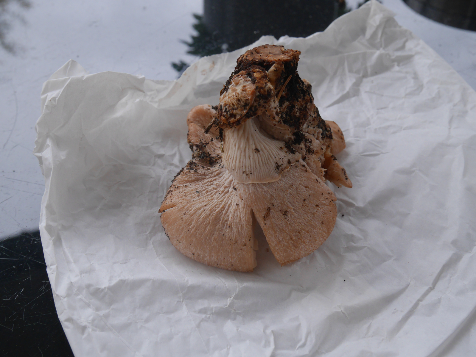 Ganz in der Nähe zum Fundort gibt es eine einzelne riesige Douglasie, eine Eibe, eine Weißtanne und viel Hasel. Einen (Mehl-)Geruch konnte ich nicht feststellen, was nicht heißt, dass er nicht da war.