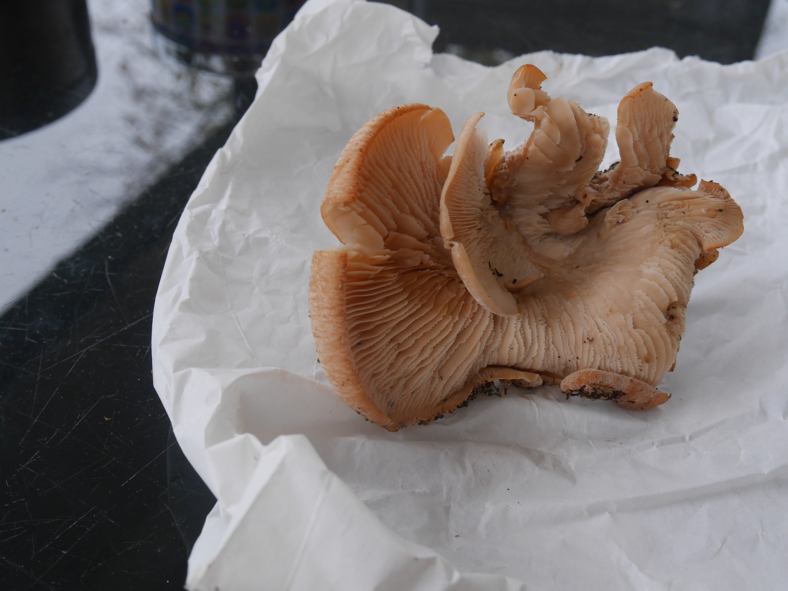 Die merkwürdige Form und die teils verdrehten Hüte sind der Tatsache geschuldet, dass sich das Pilzbüschel aus einer tiefen Wunde im Baum herausgedrückt hat. Leider sind die Standortfotos aufgrund Lichtmangel nicht vorzeigbar.