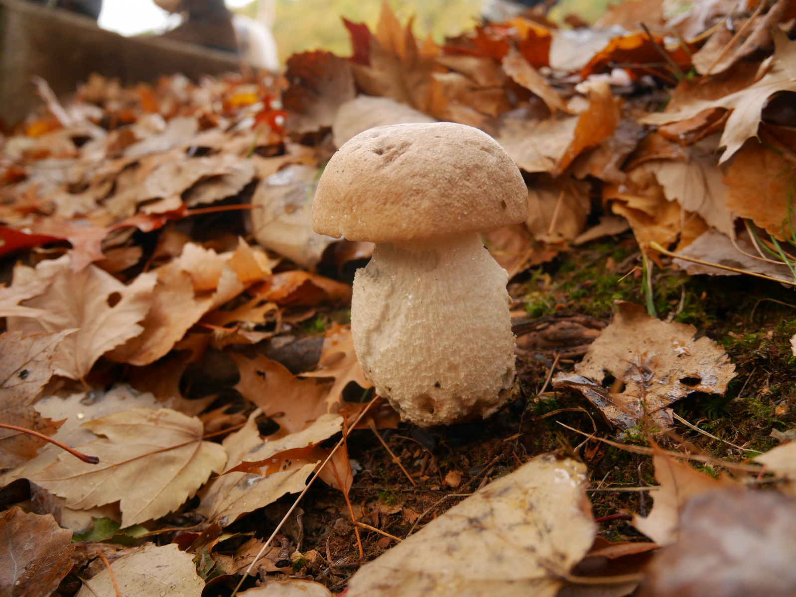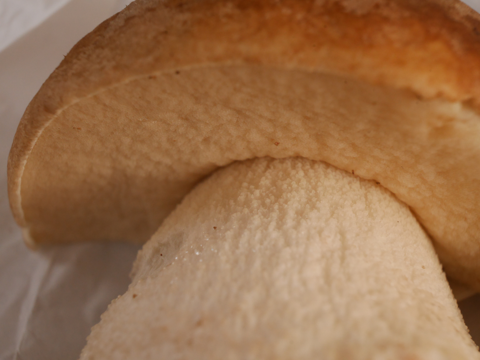 Der Stiel mutete beim flüchtigen Hinsehen eher flockig an, in den Nahaufnahmen ist jedoch deutlich eine Netzstruktur zu sehen, die allerdings im oberen Drittel des Stieles schwächer wurde und in eine flockige Struktur überging. Die wenigen Netzstieligen Hexenröhrlinge, die ich bisher gesehen habe, hatten ein deutlich ausgeprägteres Netz.