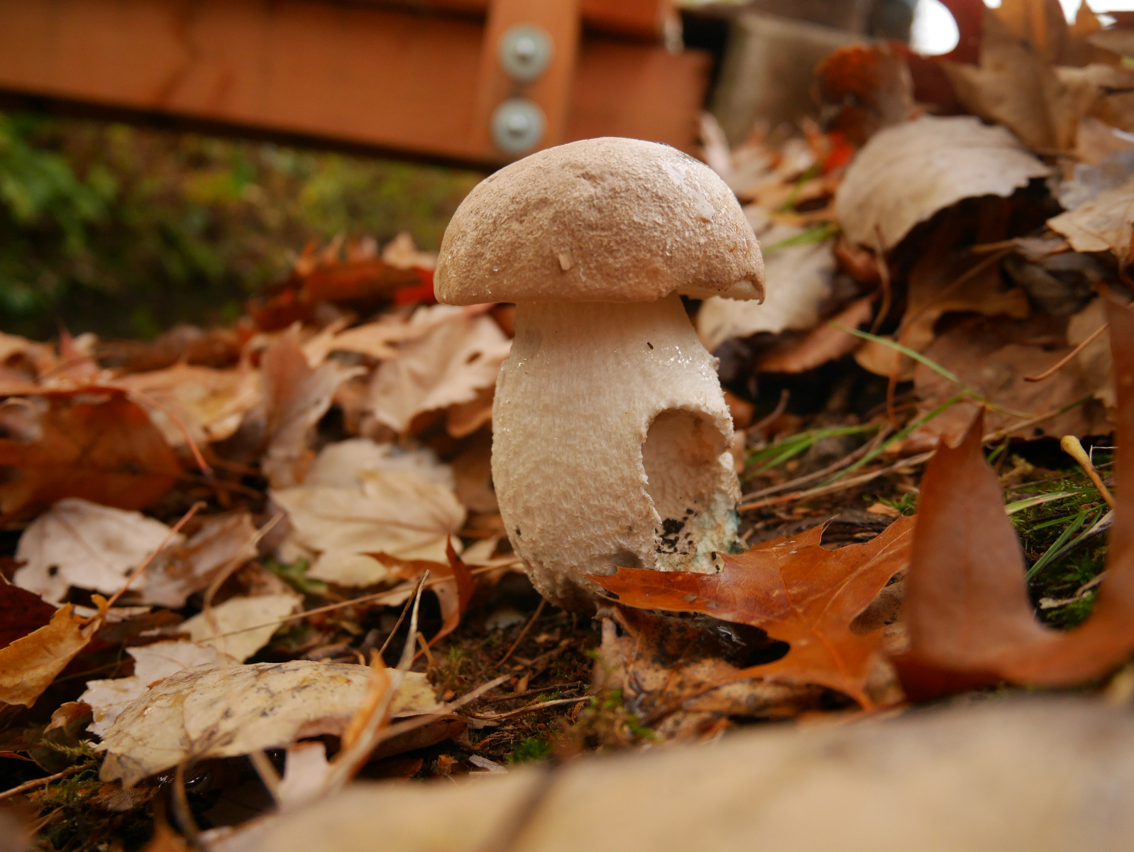 dieser Röhrling wächst regelmäßig hier im Park unter einer Scharlacheiche in Hanglage ganz in der Nähe eines Bachufers. Nicht weit entfernt befinden sich einige Birken und Pappeln.