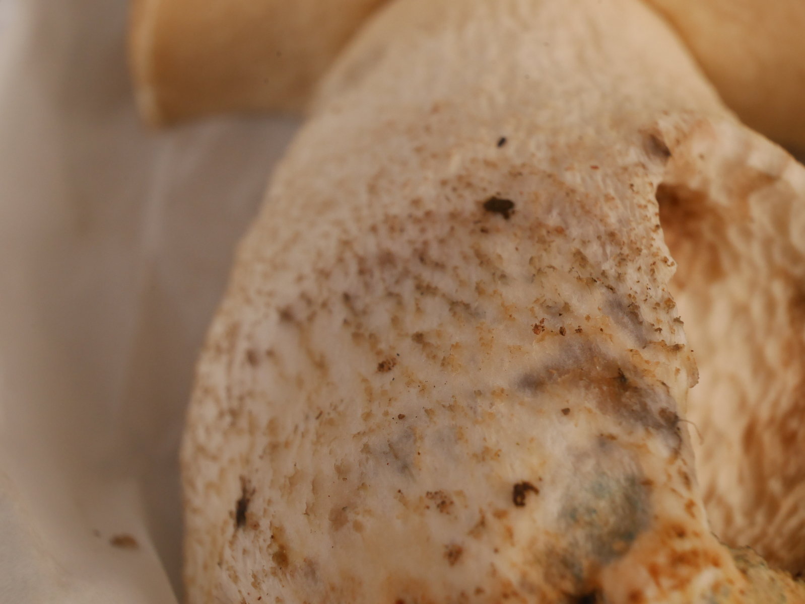 Hinsichtlich der ockerbräunlich verfärbten Stielschuppen, war es tatsächlich so, dass die Verfärbung an den Stellen auftrat, an denen ich den Stiel beim Herausdrehen aus dem Boden berührt hatte.