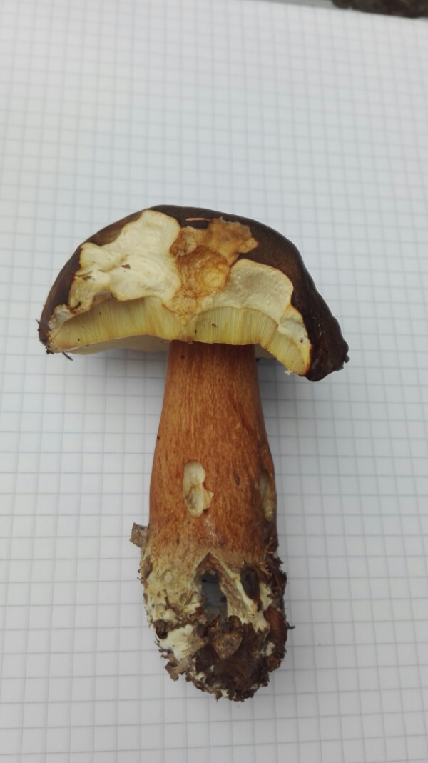 Allerdings erschien mir folgender Fund nicht wie die Übrigen. Könnt ihr mir hier weiterhelfen? Ich komme mit meinem Pilzbuch beim Bronzeröhrling (Boletus aereus) an.