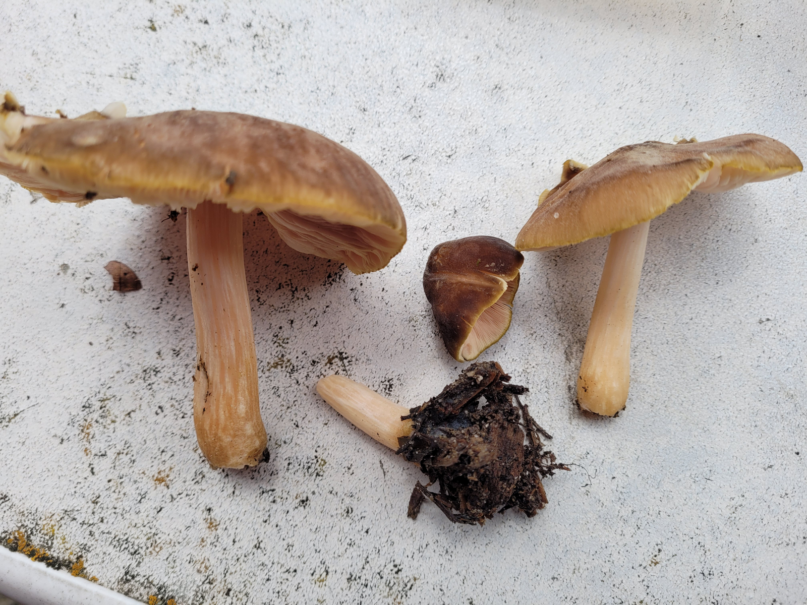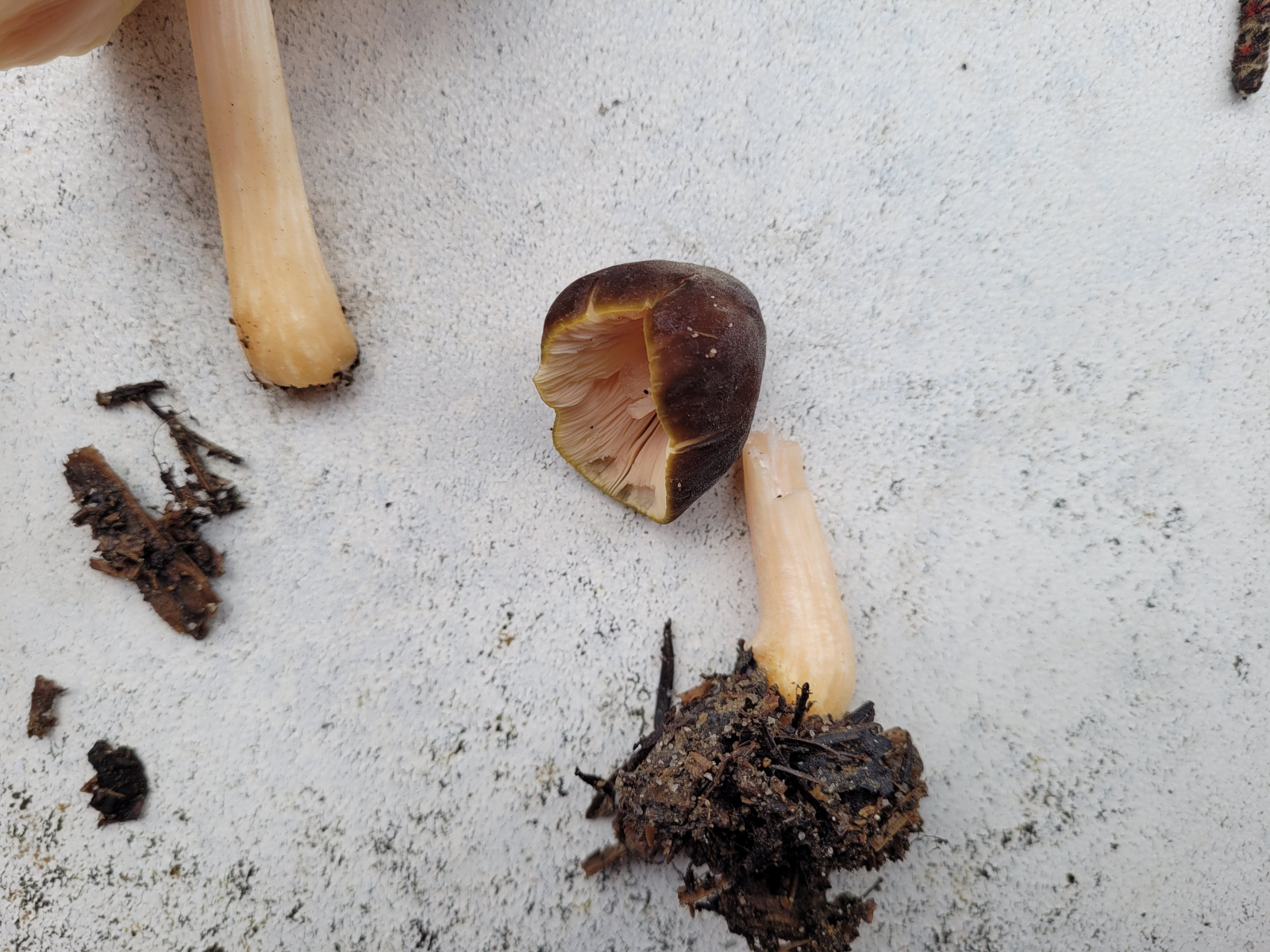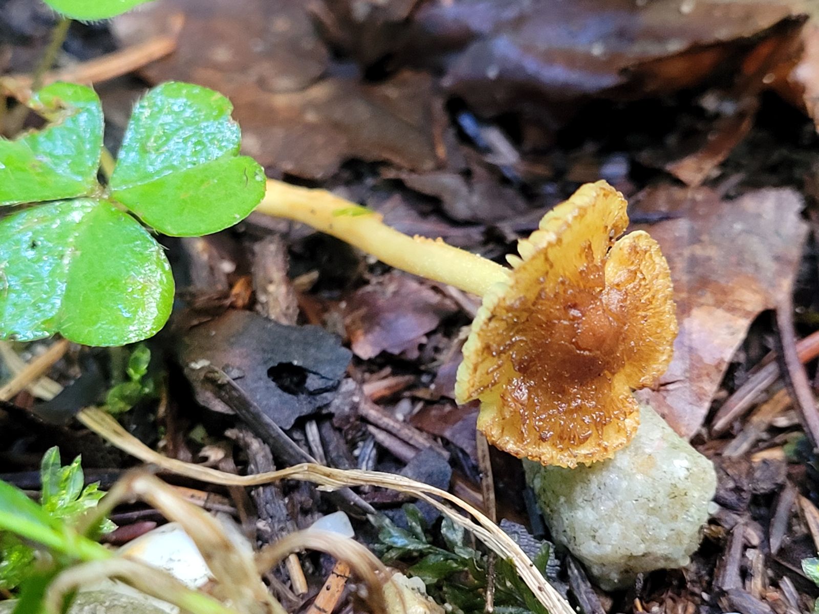 Die dicke Knolle, welche man im unteren Teil sieht, ist ein Überbleibsel eines anderen Pilzes (wohl aus der Gattung Amanita). Der Squamanita parasitiert diese Pilzart und bildet dann seinen eigenen Stiel und Hut. Er ist zudem in der Regel an eine ganz bestimmte Pilzart gebunden, was die extreme Seltenheit solcher Pilzarten erklärt. Es handelt sich meiner Meinung nach um eine der interessantesten Pilzgattungen der Welt und ich bin schon auf die mikroskopischen Untersuchungen gespannt.