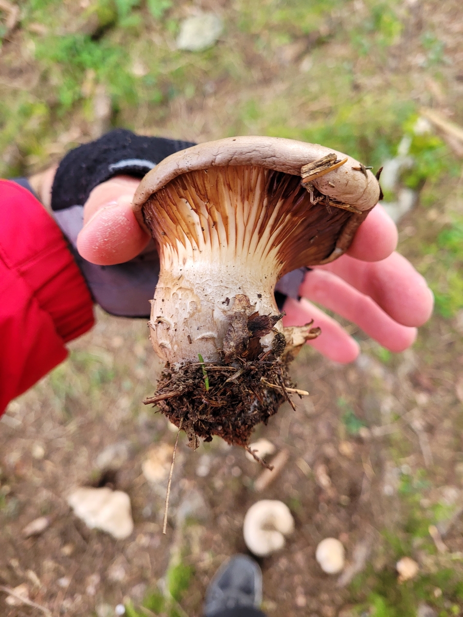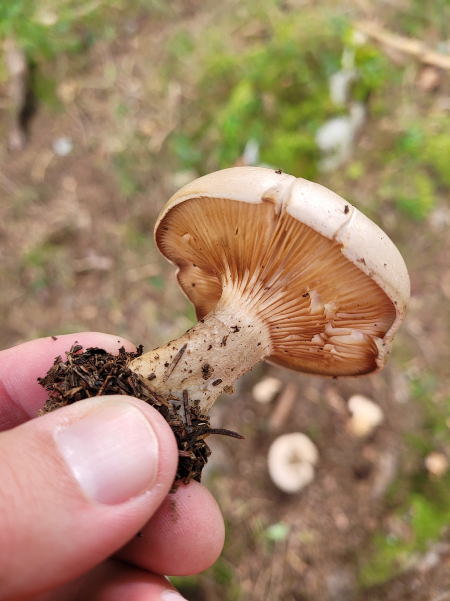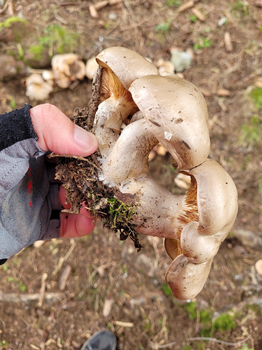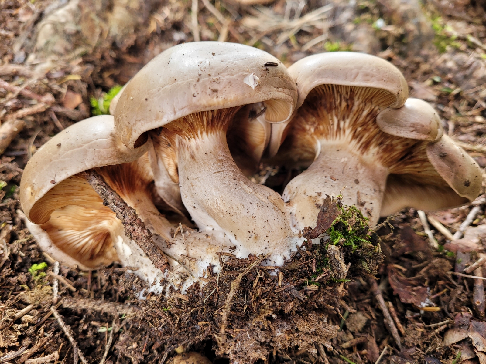Die dicke Knolle, welche man im unteren Teil sieht, ist ein Überbleibsel eines anderen Pilzes (wohl aus der Gattung Amanita). Der Squamanita parasitiert diese Pilzart und bildet dann seinen eigenen Stiel und Hut. Er ist zudem in der Regel an eine ganz bestimmte Pilzart gebunden, was die extreme Seltenheit solcher Pilzarten erklärt. Es handelt sich meiner Meinung nach um eine der interessantesten Pilzgattungen der Welt und ich bin schon auf die mikroskopischen Untersuchungen gespannt.