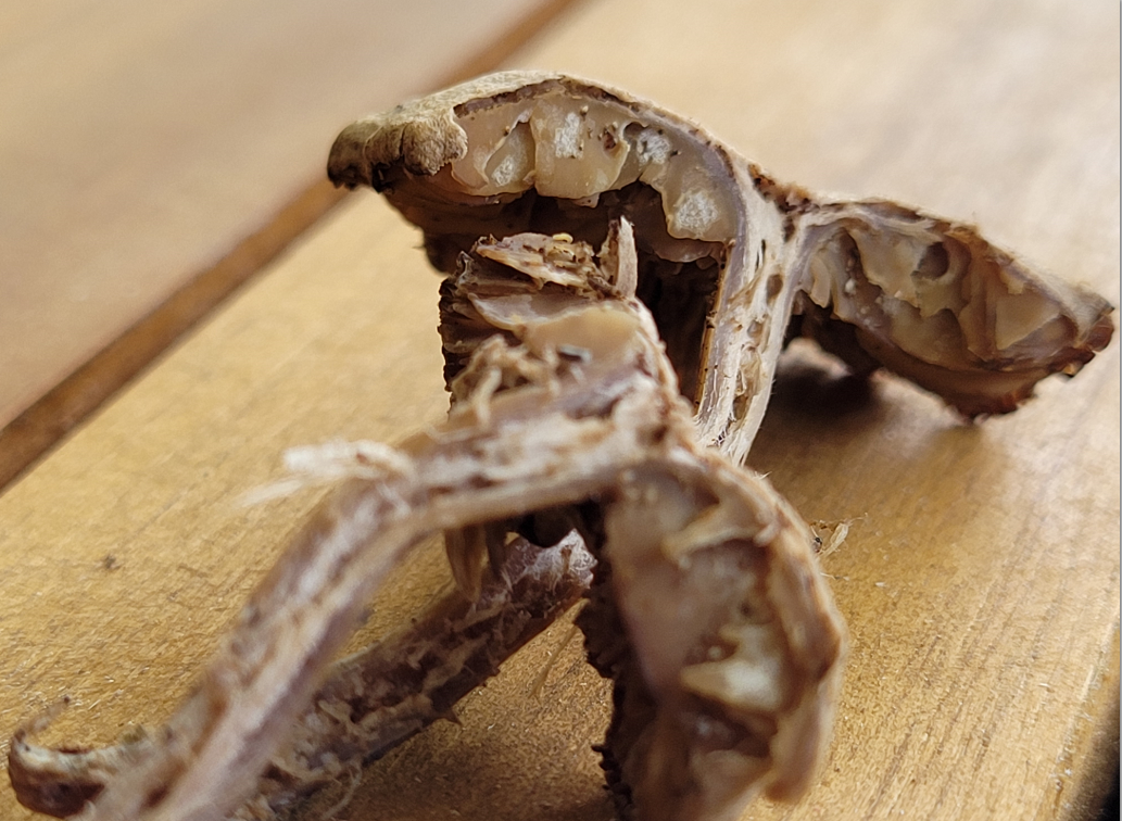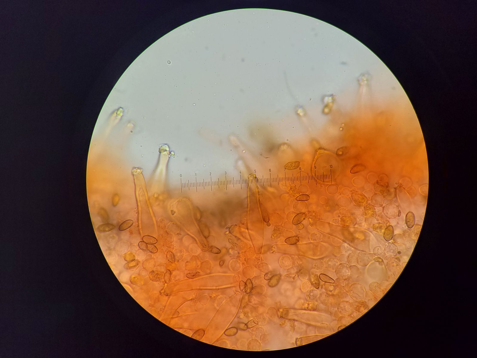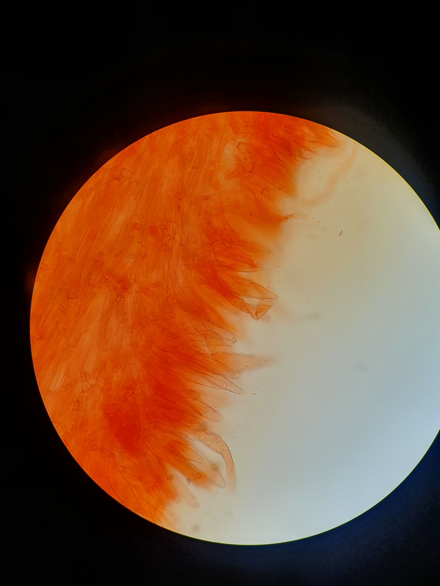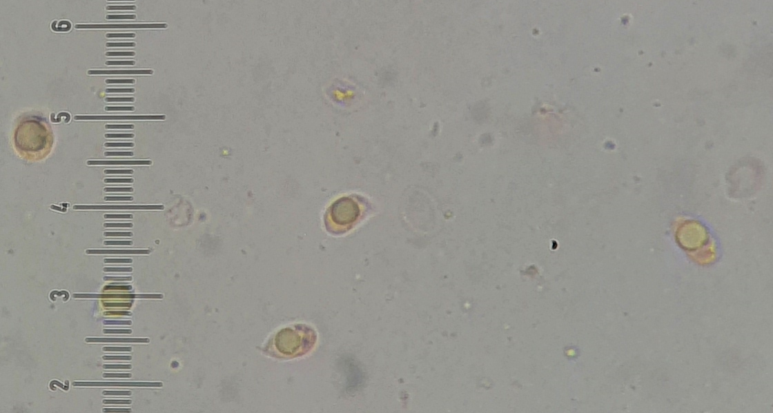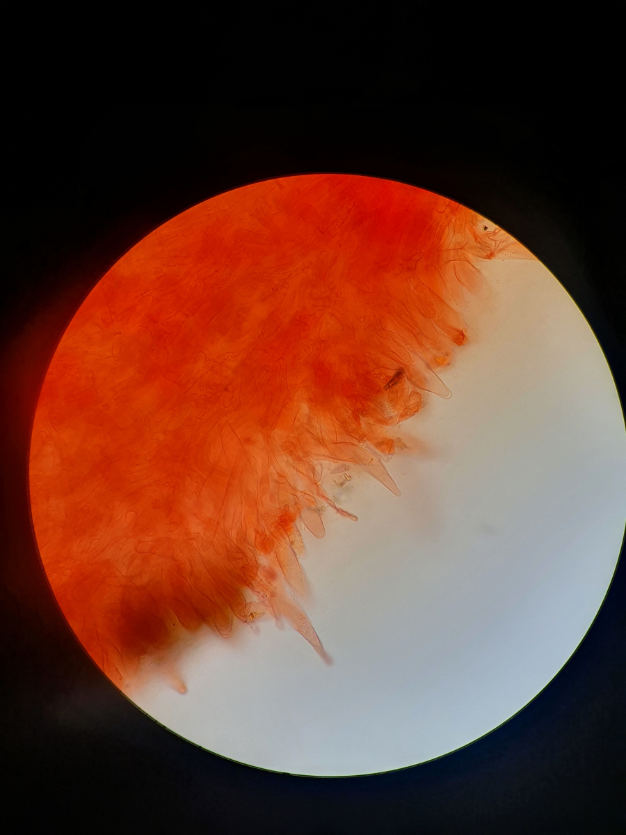 Das Geheimnis um die Art hat sich am Wochenende bereits gelöst, da der Student selber im Bereich der DNA-Sequenzierung arbeitet und eine Probe aus dem oberen Teil analysiert hatte. (Eine weitere Probe aus dem unteren Teil blieb leider erfolglos.) Die ITS Sequenz des oberen Teils zeigt klar, dass es sich um Squamanita orientalis handelt (die Sequenz stimmt mit 99.8% mit der Sequenz des Holotyp-Fundes aus China überein!), was mich doch erstaunt hatte!