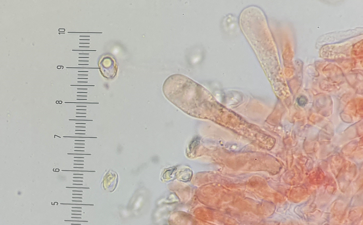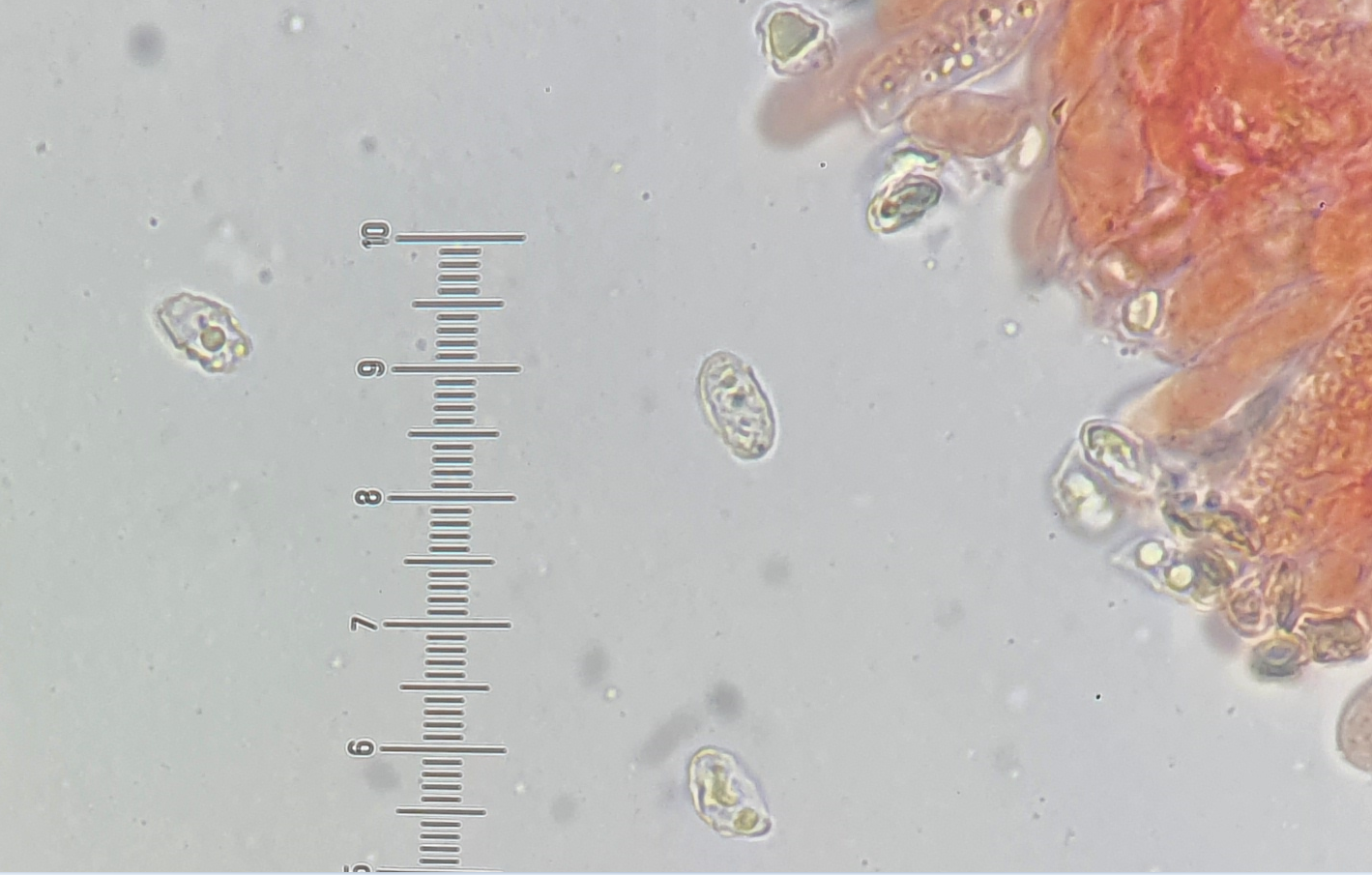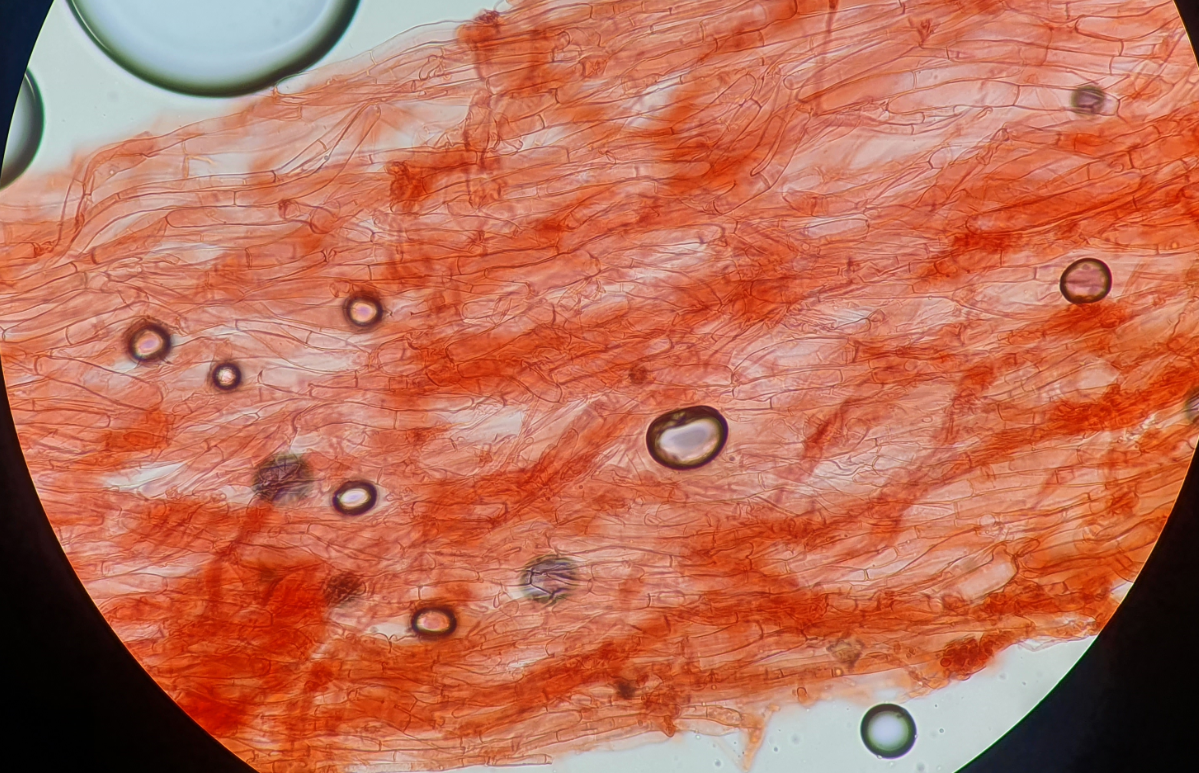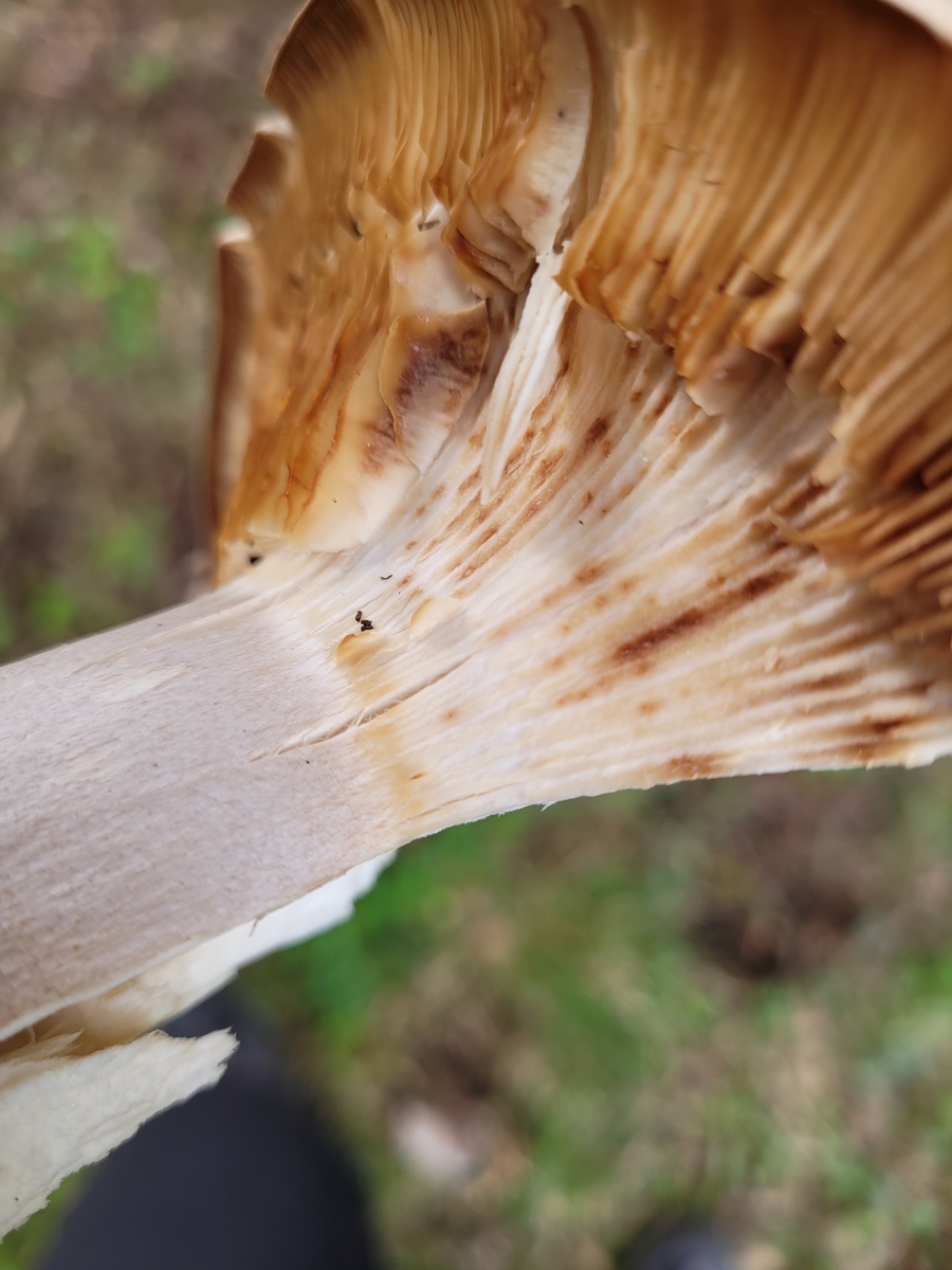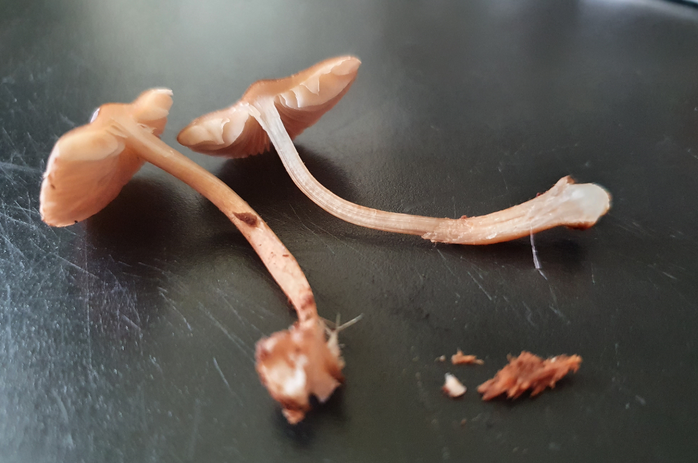 Das Geheimnis um die Art hat sich am Wochenende bereits gelöst, da der Student selber im Bereich der DNA-Sequenzierung arbeitet und eine Probe aus dem oberen Teil analysiert hatte. (Eine weitere Probe aus dem unteren Teil blieb leider erfolglos.) Die ITS Sequenz des oberen Teils zeigt klar, dass es sich um Squamanita orientalis handelt (die Sequenz stimmt mit 99.8% mit der Sequenz des Holotyp-Fundes aus China überein!), was mich doch erstaunt hatte!