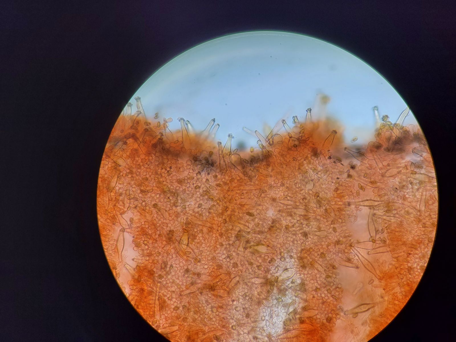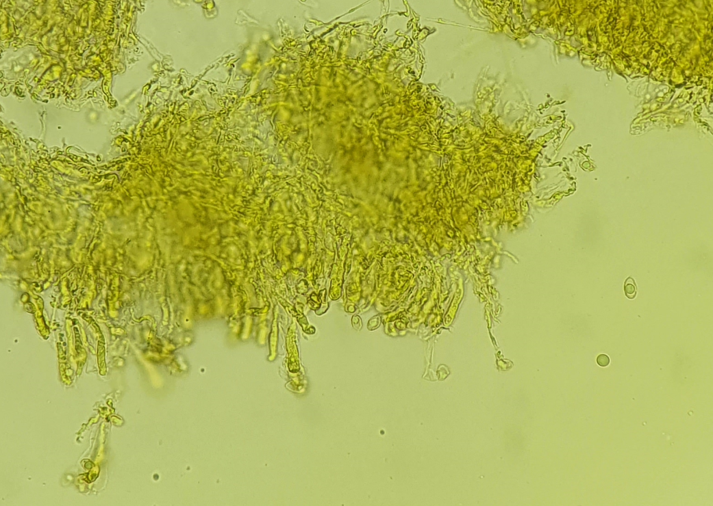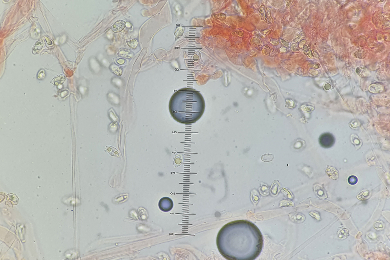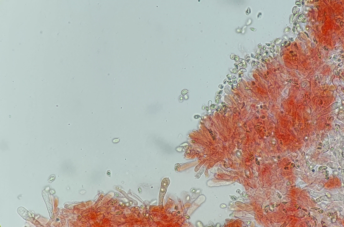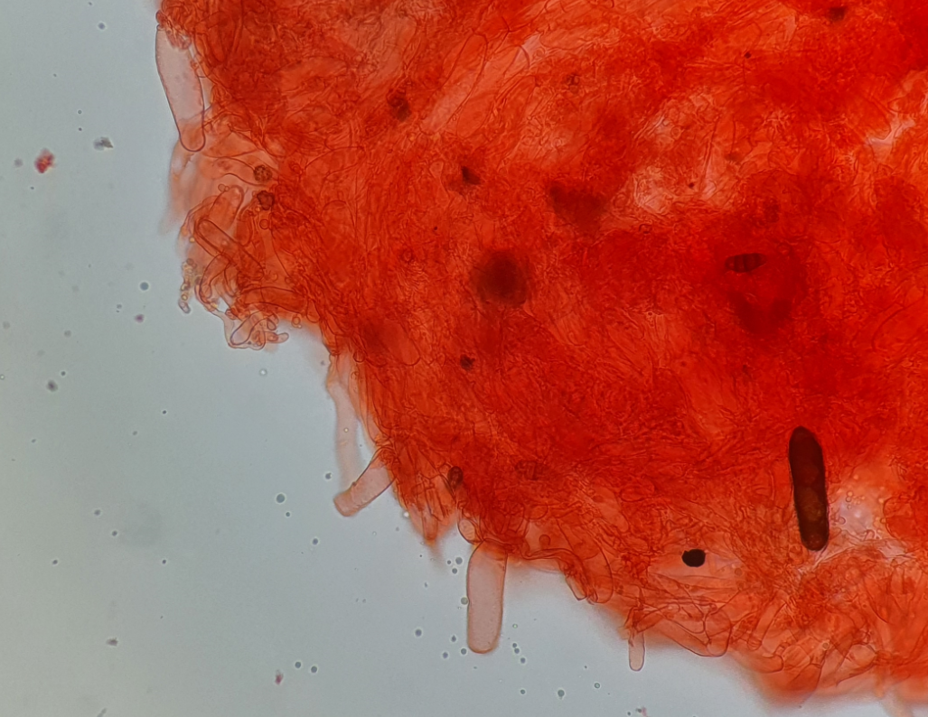 Da der Student keine adäquaten mikroskopischen Untersuchungen machen konnte hatte ich ihn gebeten, ihn einer entsprechenden Abteilung einer japanischen Universität oder mir zukommen zu lassen (damit der Pilz vorerst in "sicheren Händen" ist). Er hat sich für die zweite Variante entschieden und den gefriergetrockneten Fruchtkörper perfekt verpackt an mich gesandt. Das Exsikkat befindet sich nun bei mir in der Schweiz und ist in einem sehr guten Zustand. Die mikroskopischen Untersuchungen werden in dieser Woche noch gemacht werden.