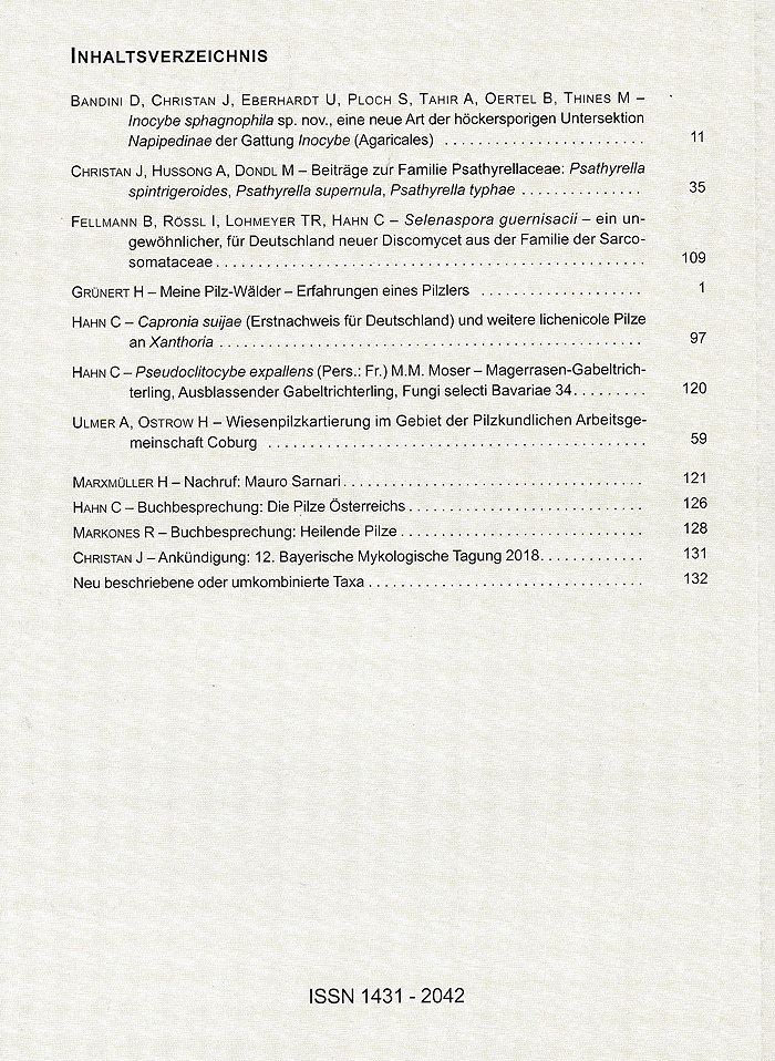 stolz kann und darf ich mitteilen, dass Band 18 der Mycologia Bavarica erschienen ist. Manche haben es ohnehin schon mitbekommen, da zwischendurch ein Artikel des aktuellen Heftes diskutiert wurde.