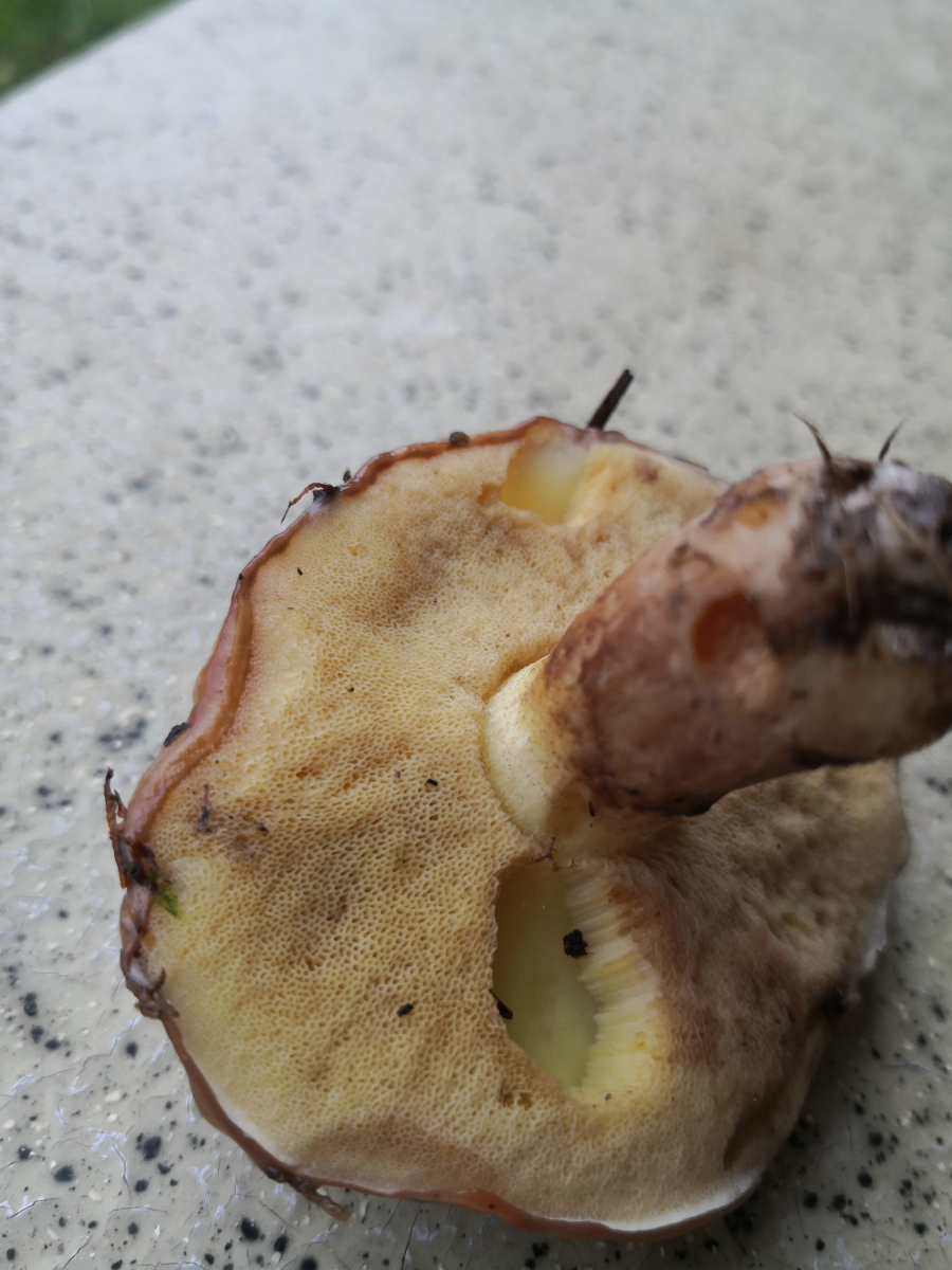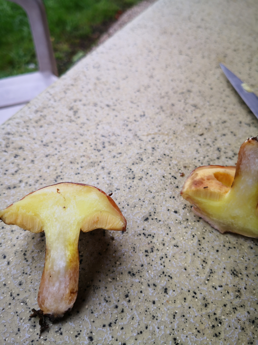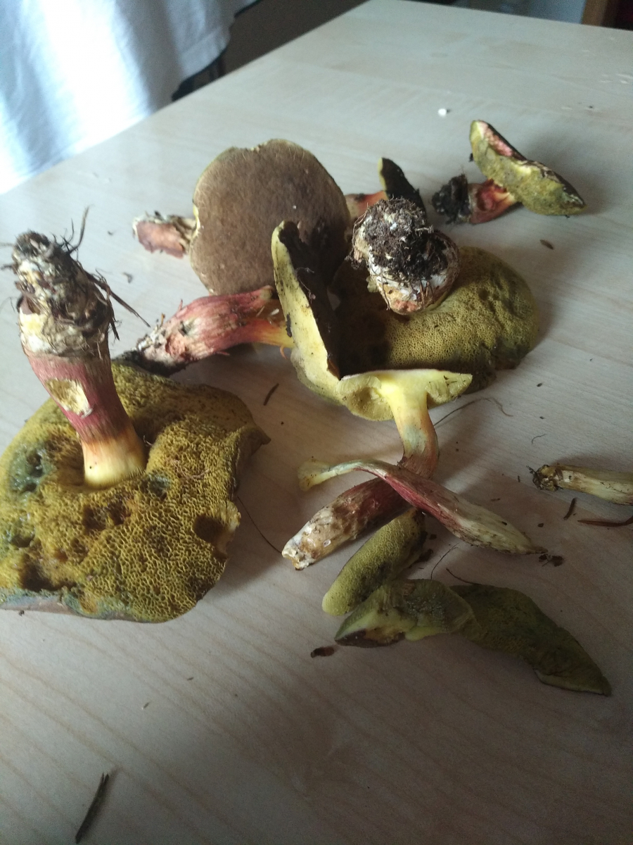 Rein von der Optik wäre ich mir sicher, dass es Rotfußröhrlinge sind. Aber sie blauen (nahezu) nicht.