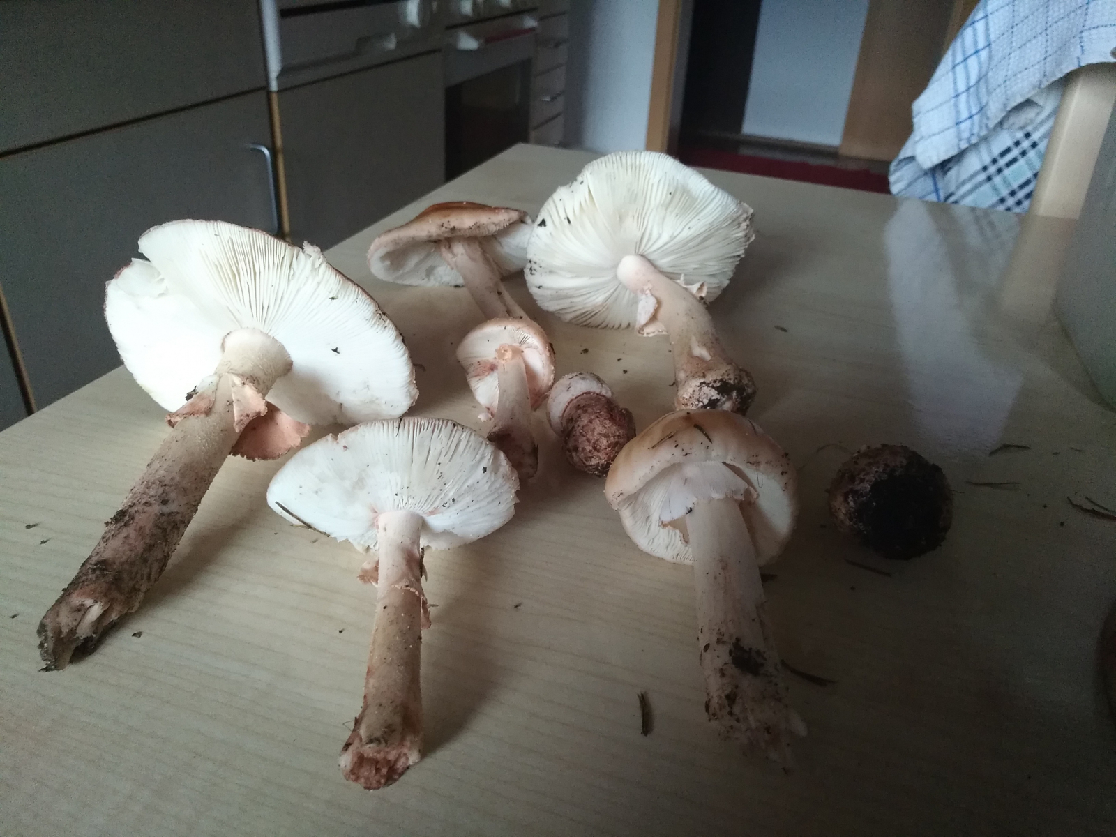 mir ist vollkommen klar, dass ihr mir keine Essensfreigabe geben könnt. Ich sammle seit Jahren gern Pilze und habe bisher alles stehen lassen, was Lamellen hat. Jetzt mag ich nicht mehr. Die glänzen so schön, dass es Perlpilze sein müssen, oder? Gefunden in jungem Mischwald.