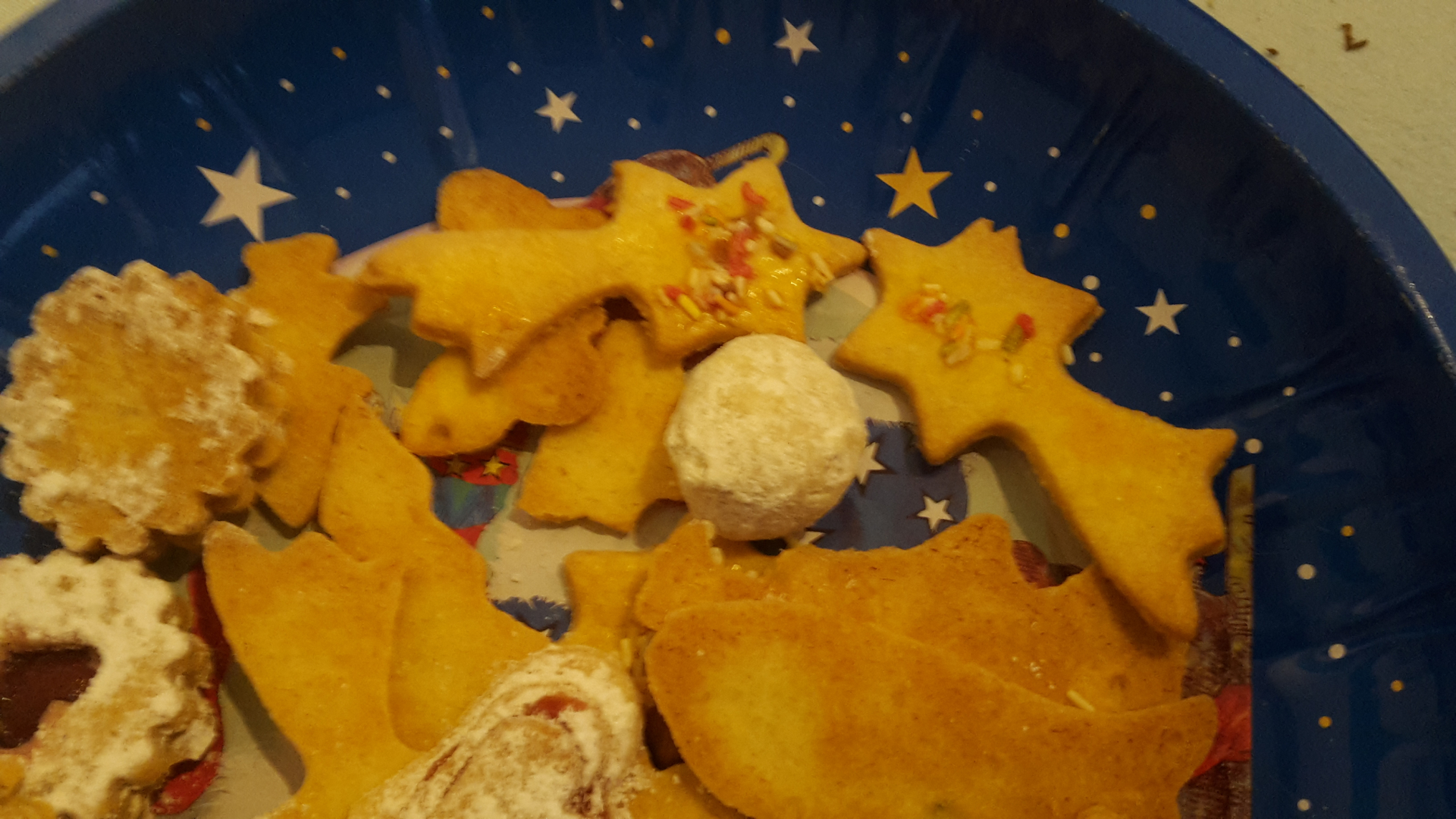 Bitte bitte bedient euch nur hab genug plätzchen für alle gebacken und danke für den Tee