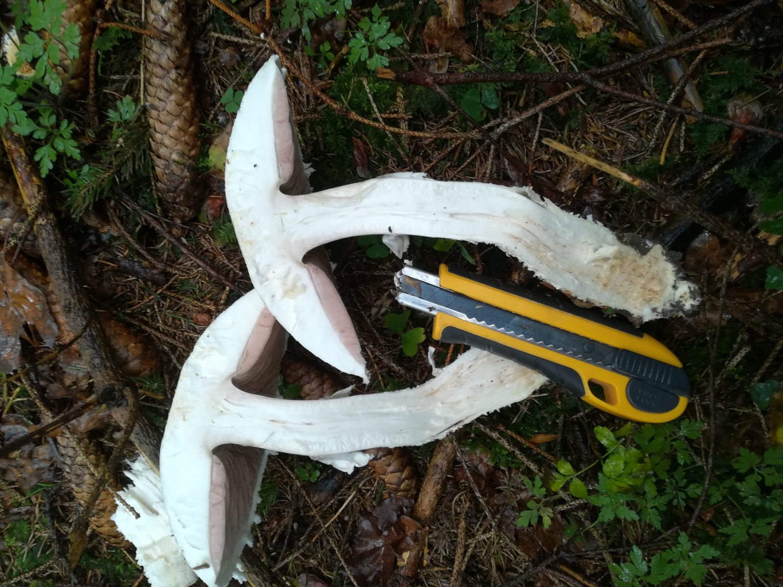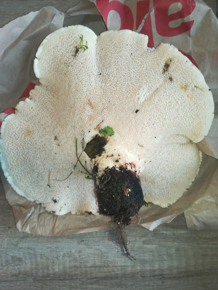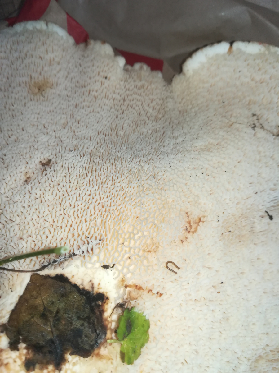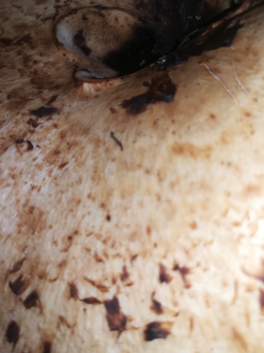 Hi Pablo, da war noch ein riesiger der locker 20cm Durchmesser hatte. Der hatte leicht rosa lamellen und war von maden zerfressen. Und der hut sah aus wie beim blutegerling nur hald riesig. Leider hatte ich kein handy dabei wegen bildern. Und hald keine rötung sondern gilben.