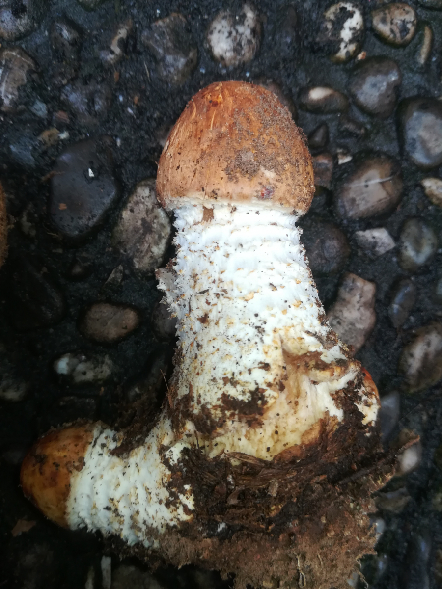Chlorophyllum brunneum sollte eine gerandete Knolle haben, sehr deutlich bei jungen Exemplaren.